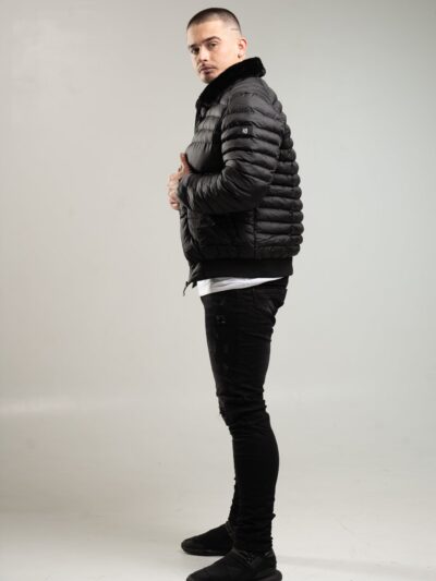 Czarna bomberka męska ze ściągaczem i ciepłym kołnierzem