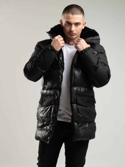 Stylowa czarna kurtka męska z ozdobnymi zamkami