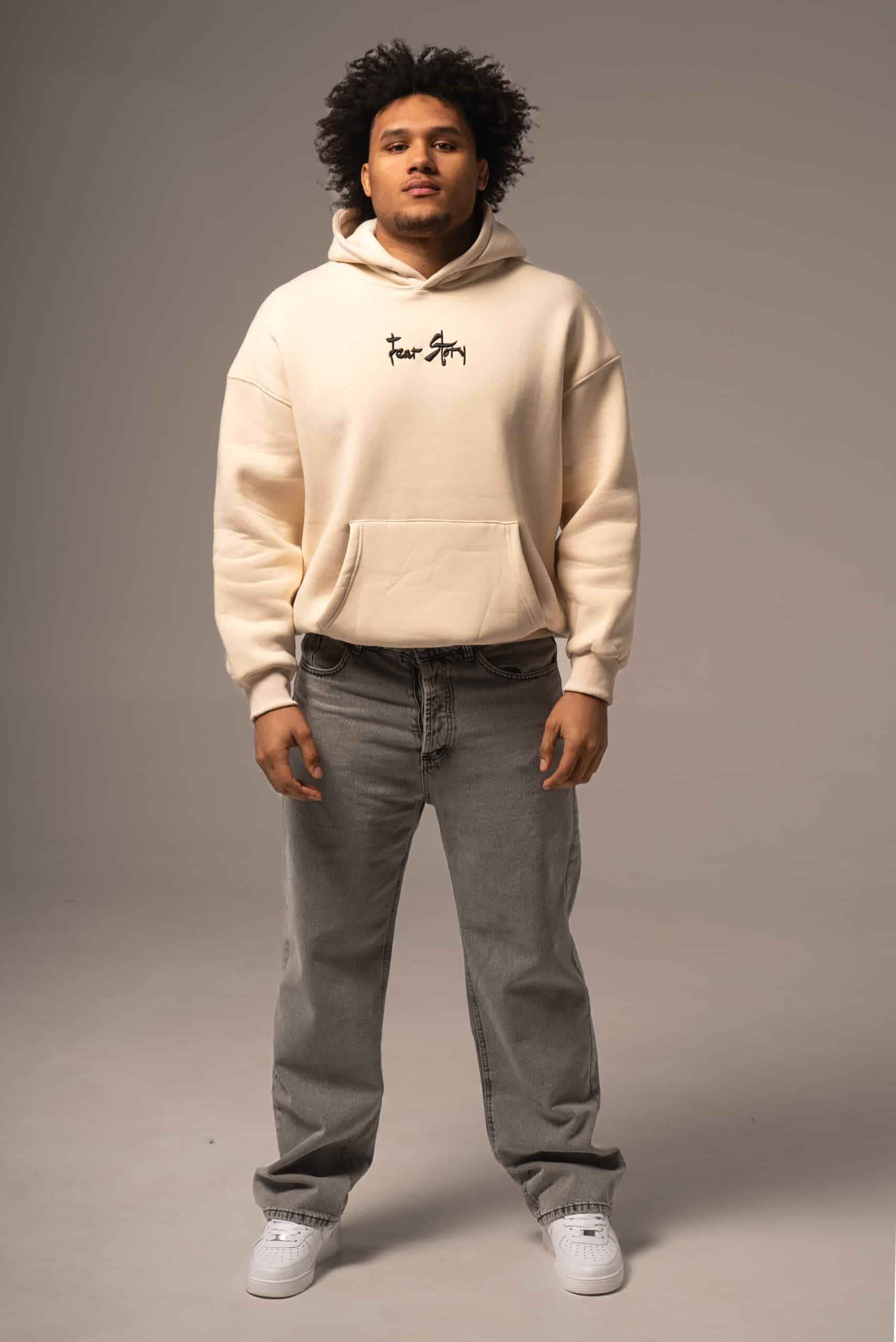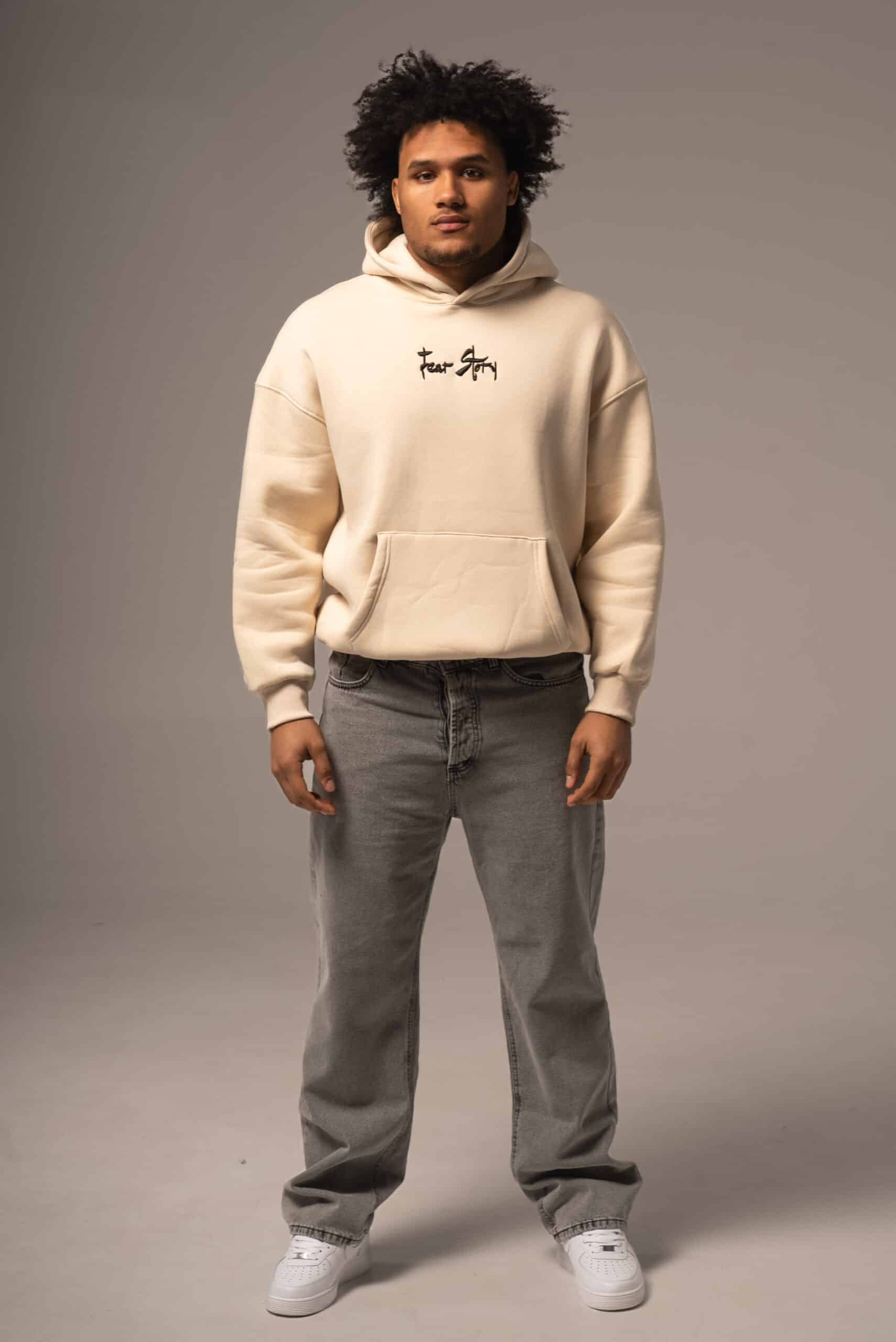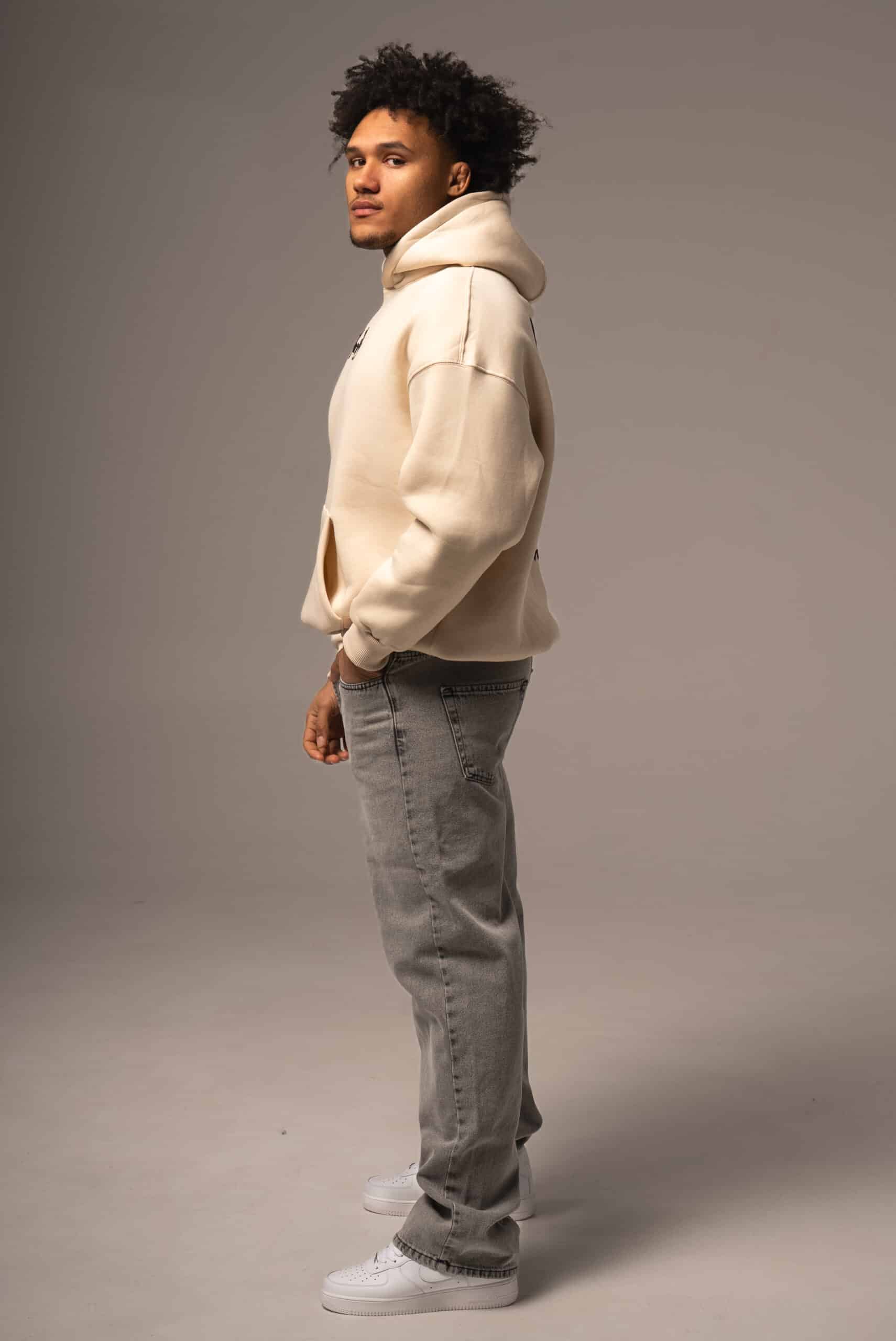 Beżowa bluza męska oversize z nadrukiem na plecach