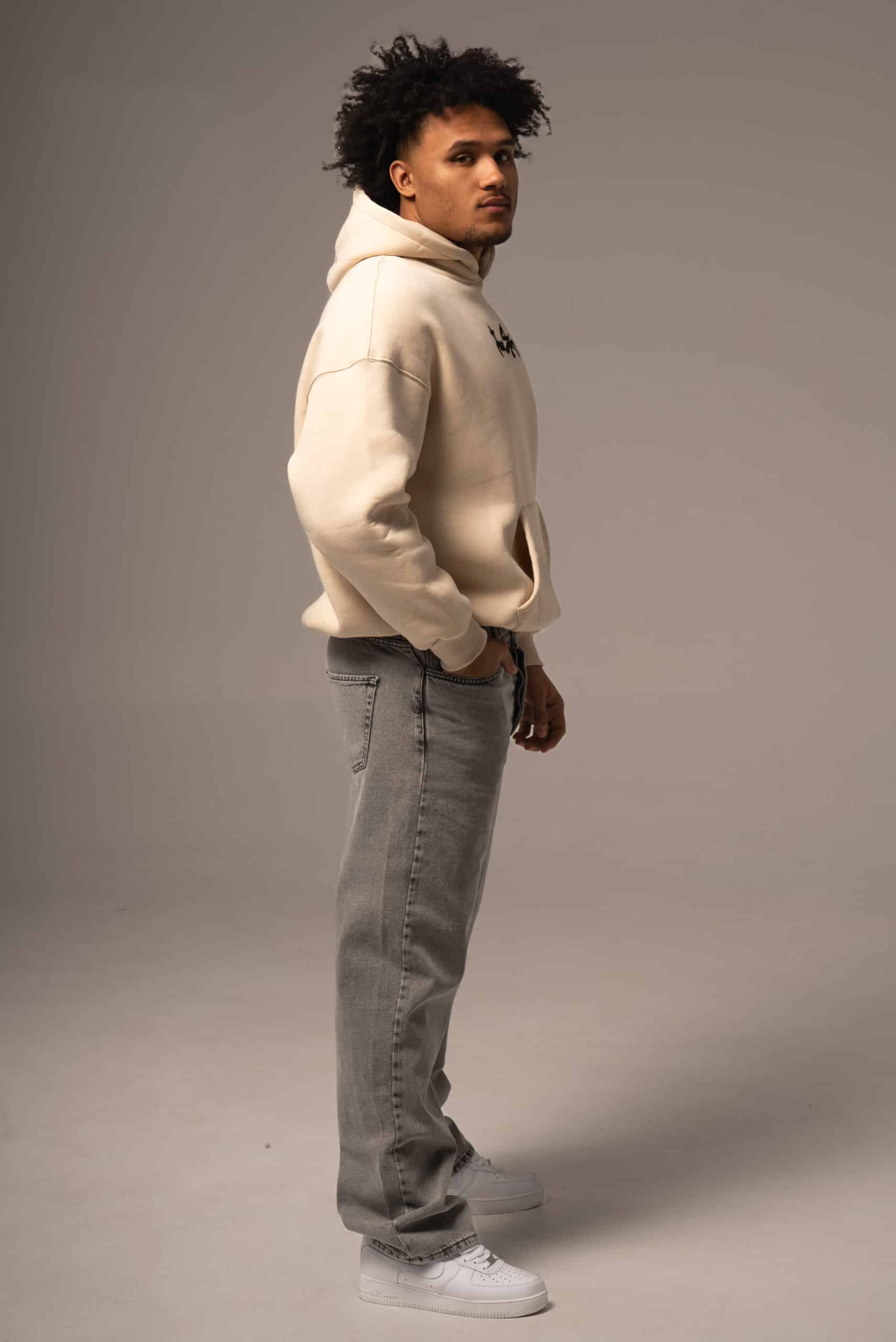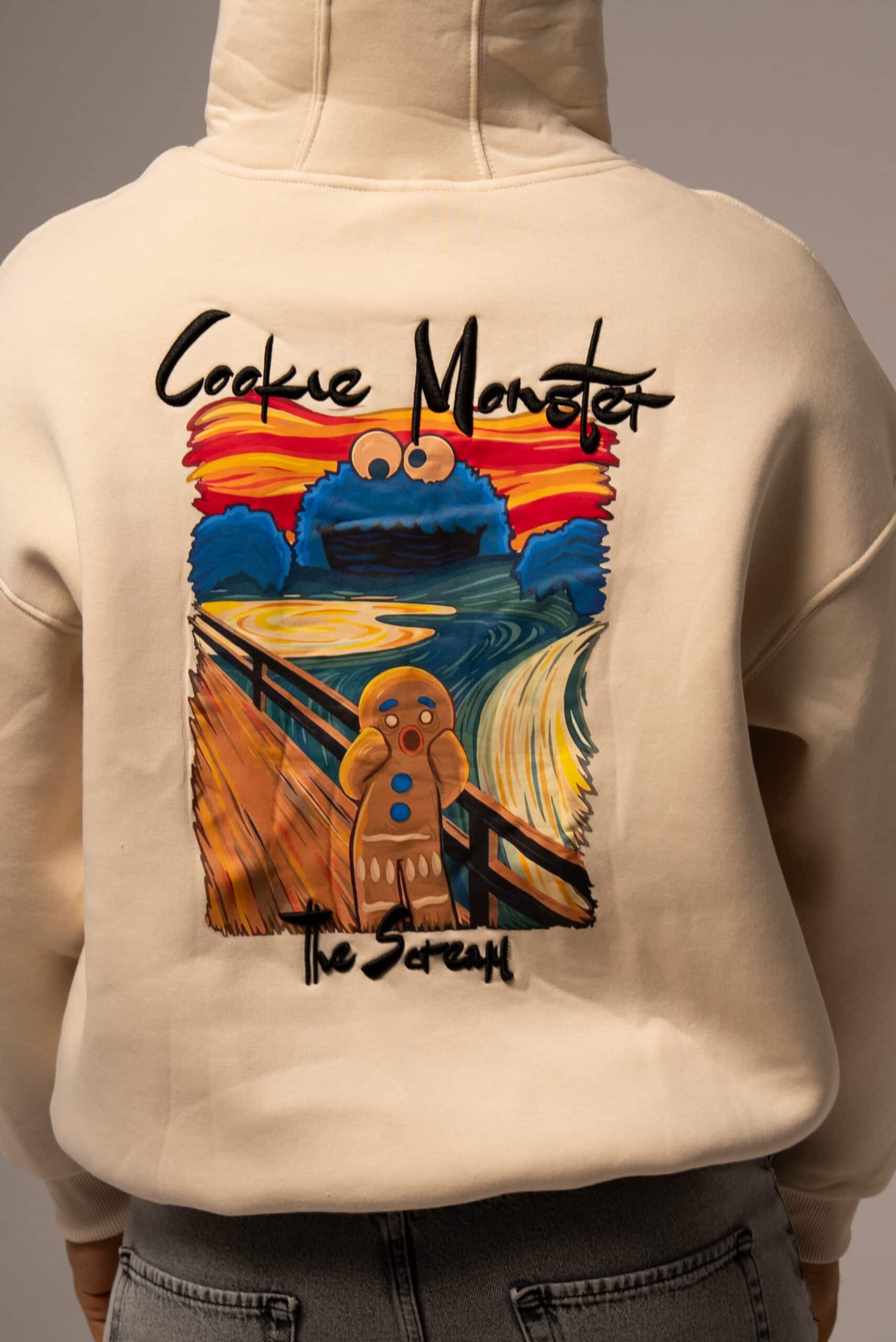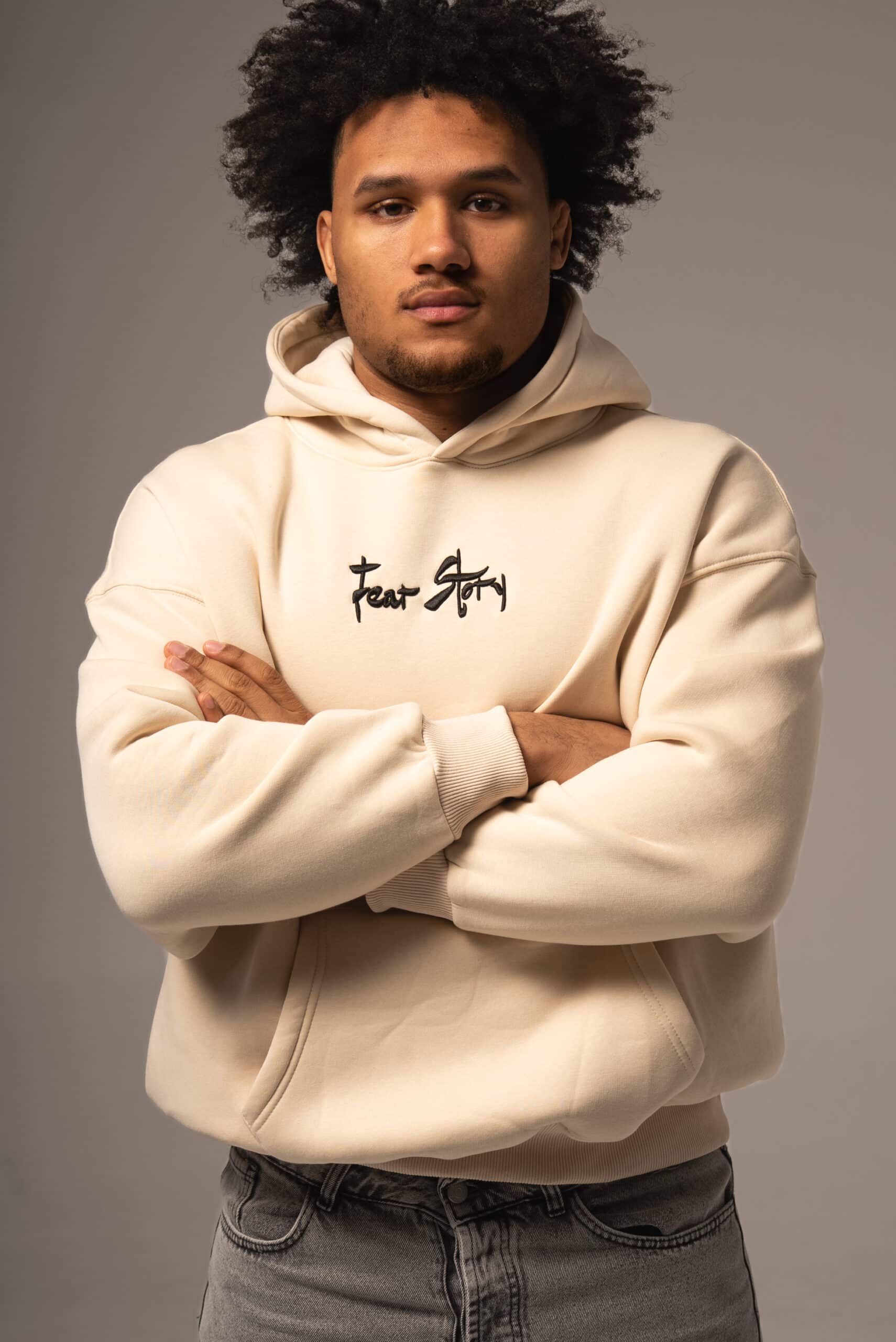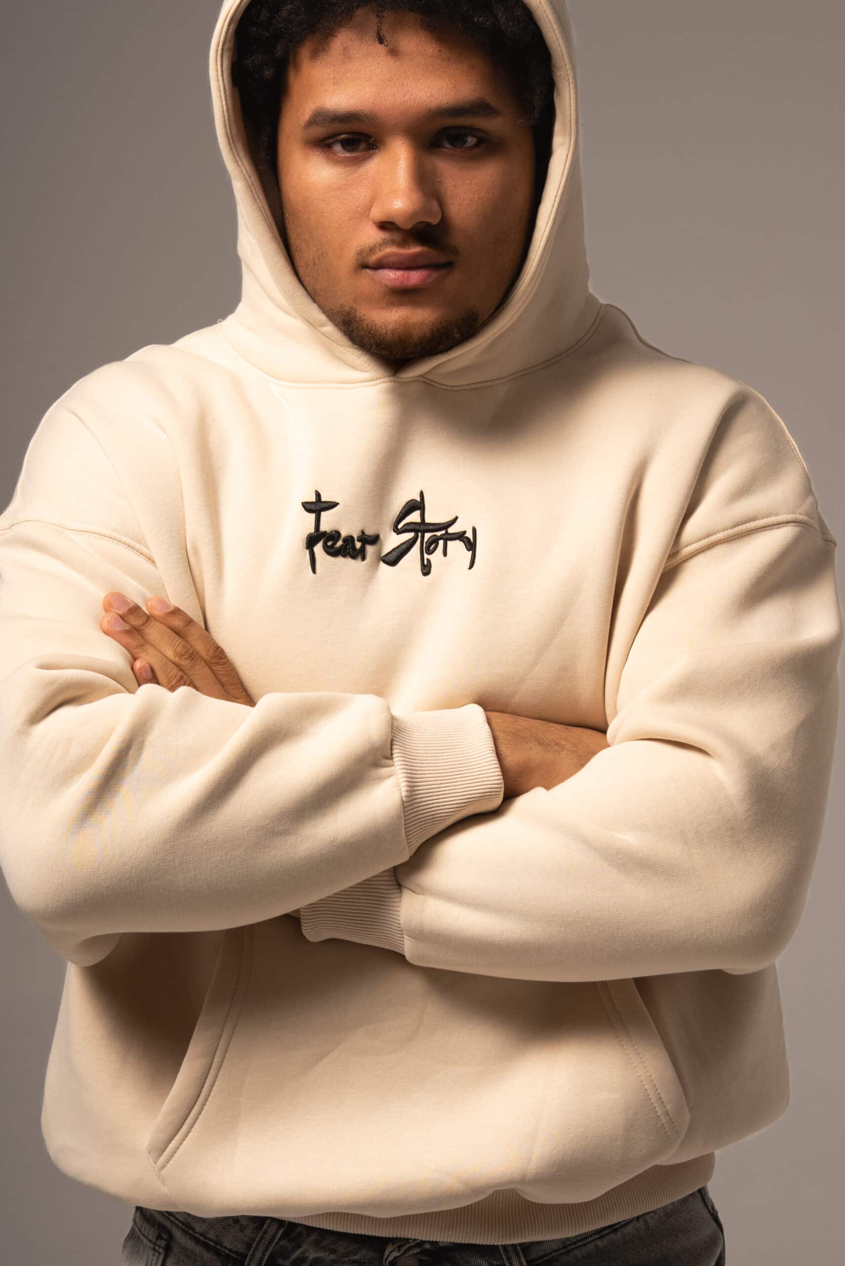Beżowa bluza męska oversize z nadrukiem na plecach