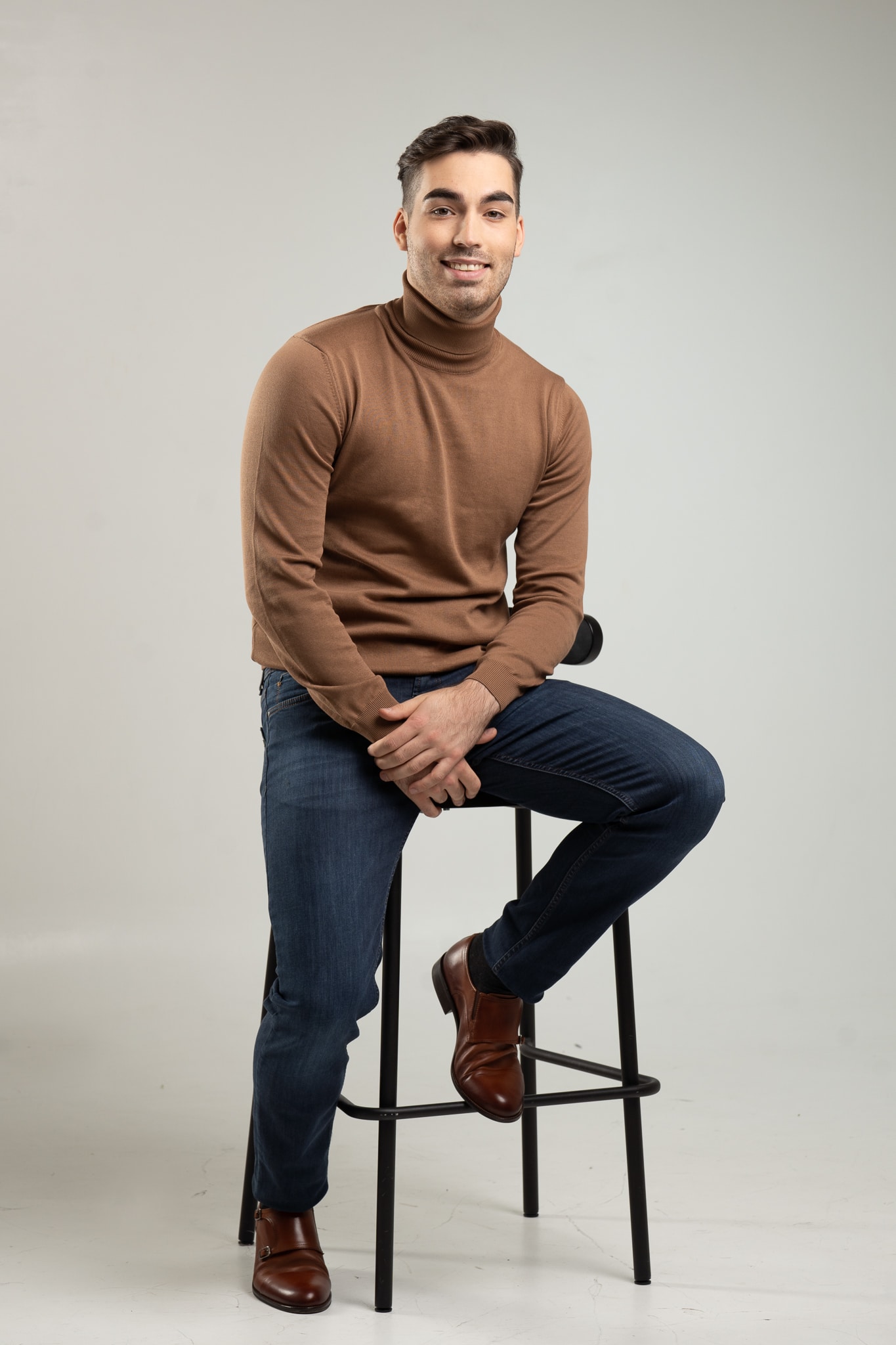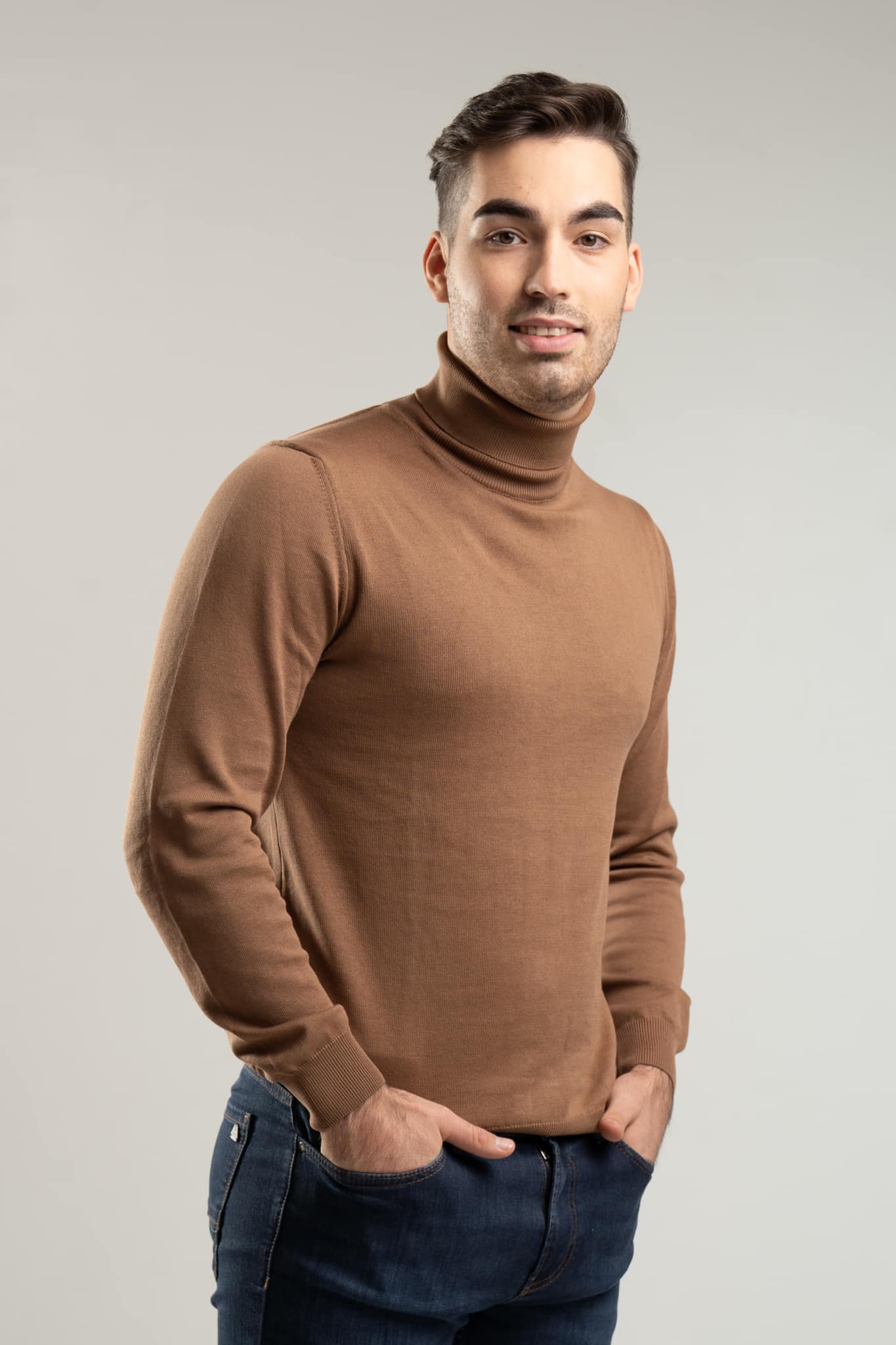 Golf męski w kolorze beżowym wykonany został z najwyższej jakości tkaniny bawełnianej (100% bawełny), co gwarantuje najwyższy komfort użytkowania. Wyposażony został w ściągacze w pasie i w rękawach dla zapewnienia maksymalnego komfortu termicznego. Cechuje go jakość wykonania oraz dbałość o detale.