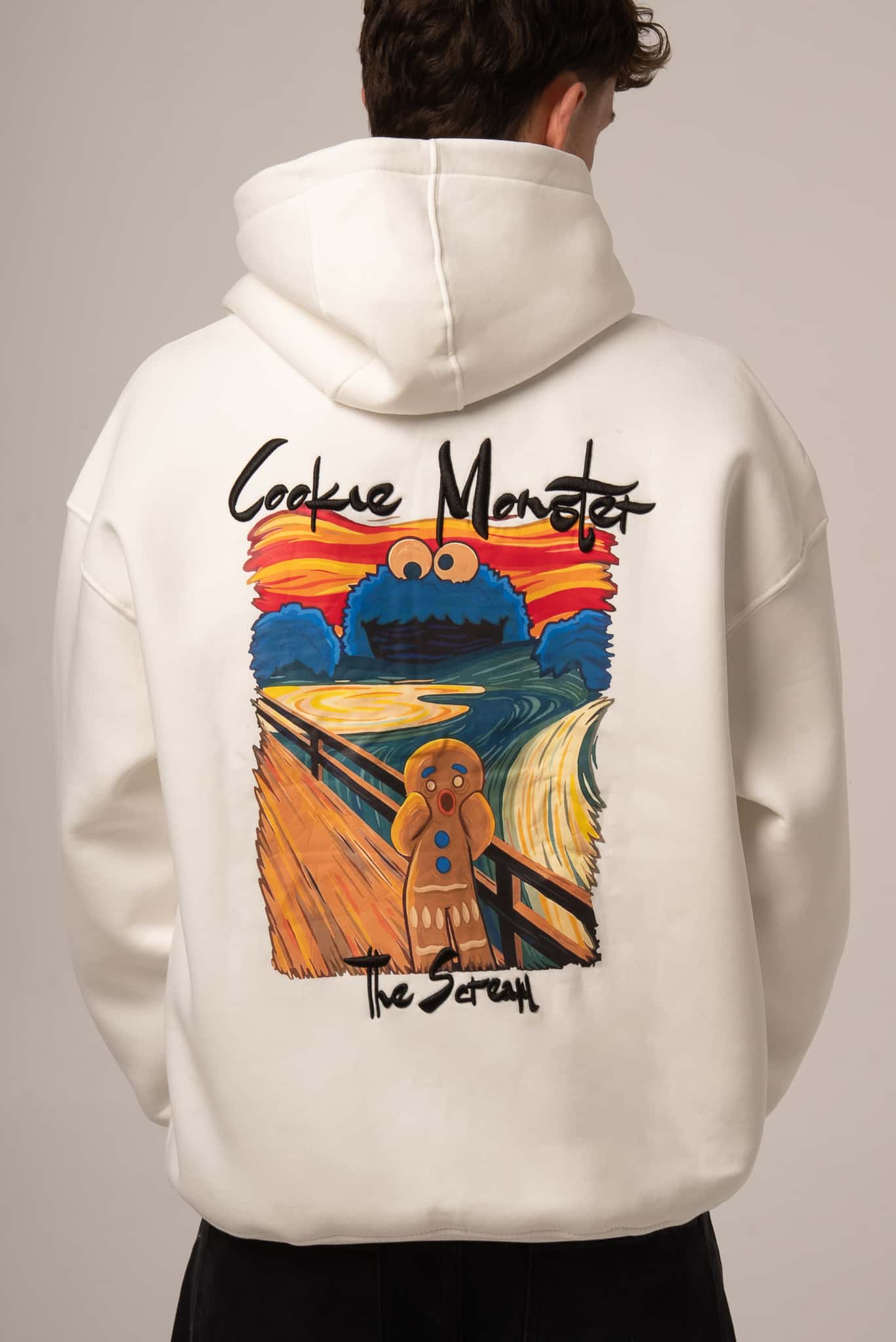 Biała bluza męska oversize z kolorowym nadrukiem