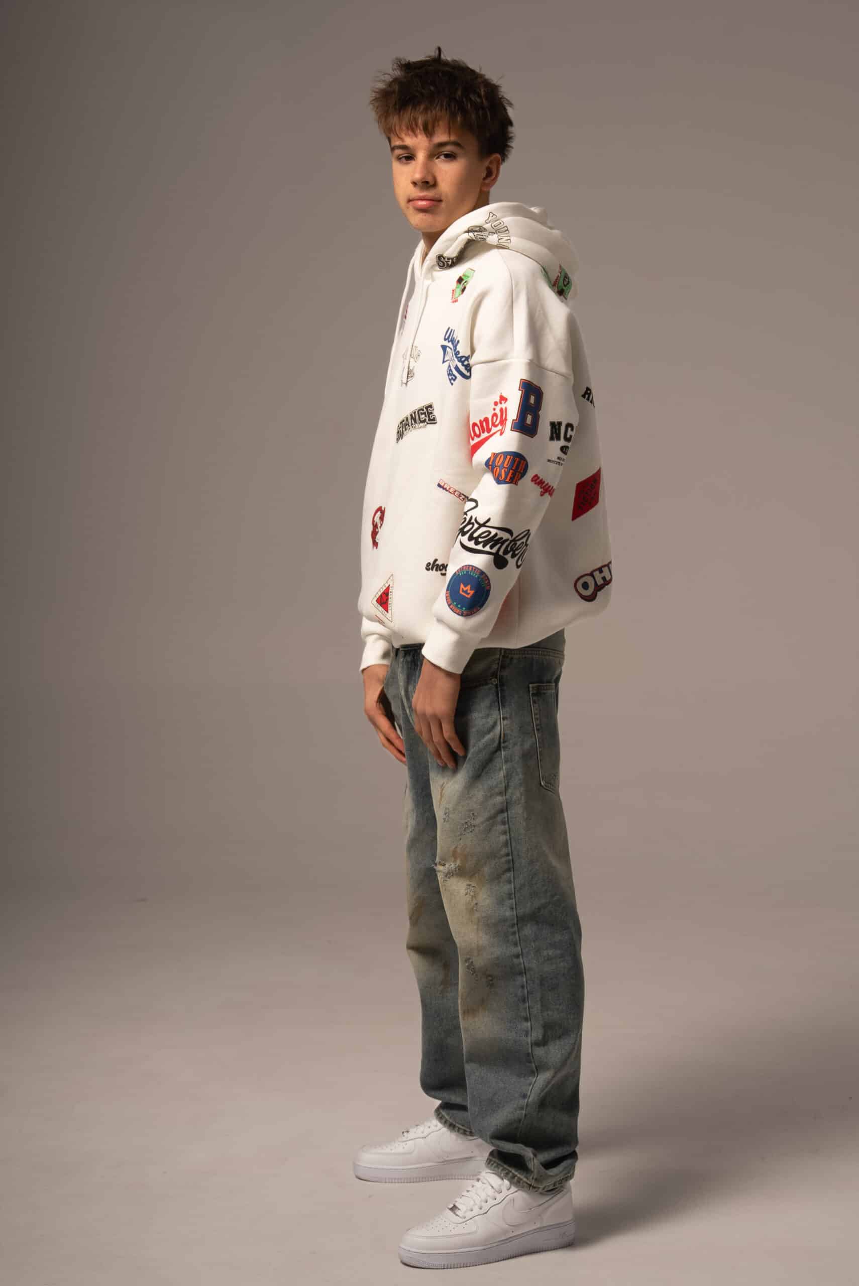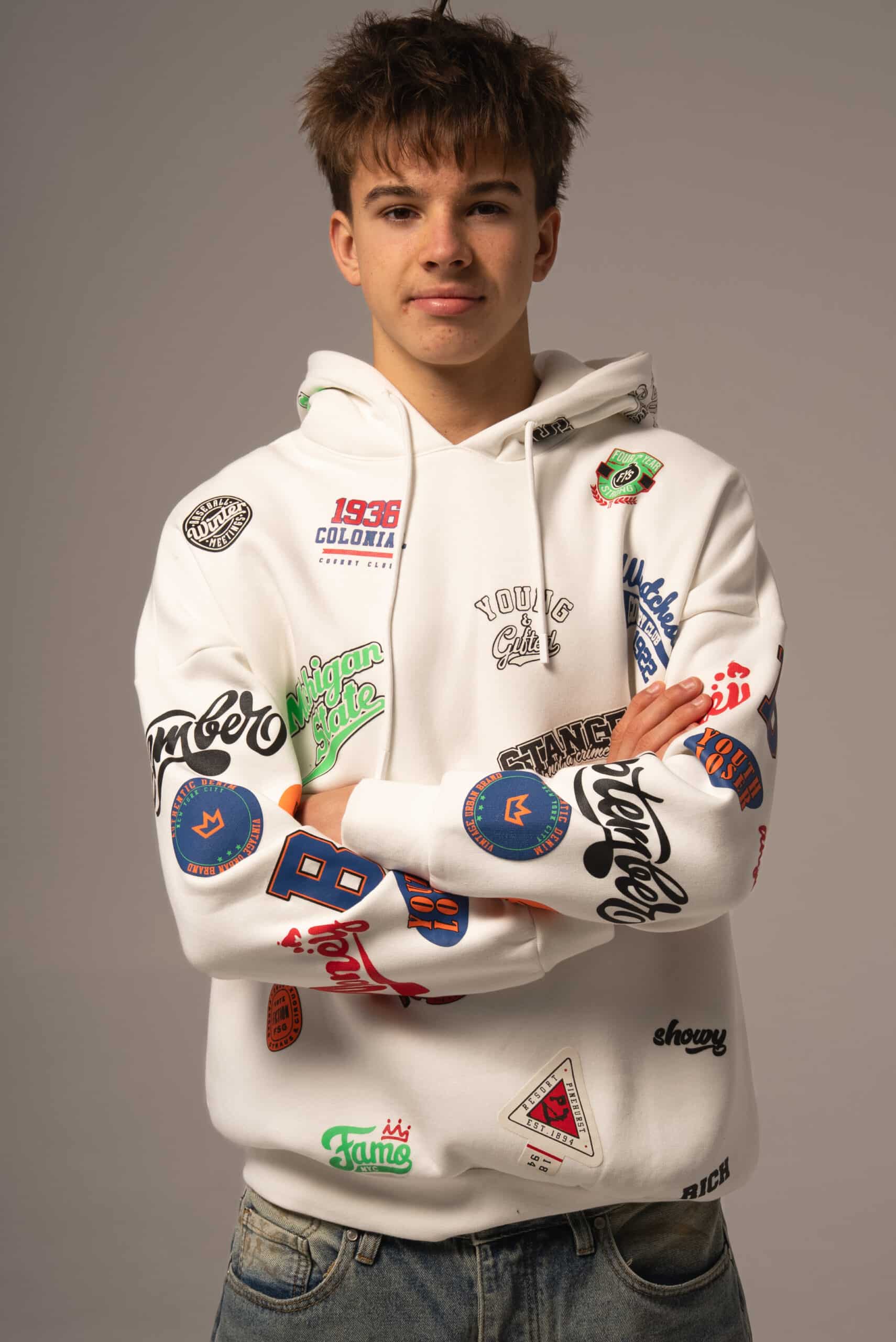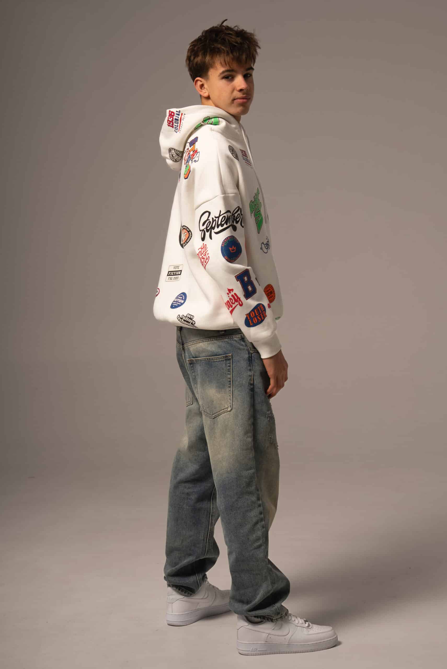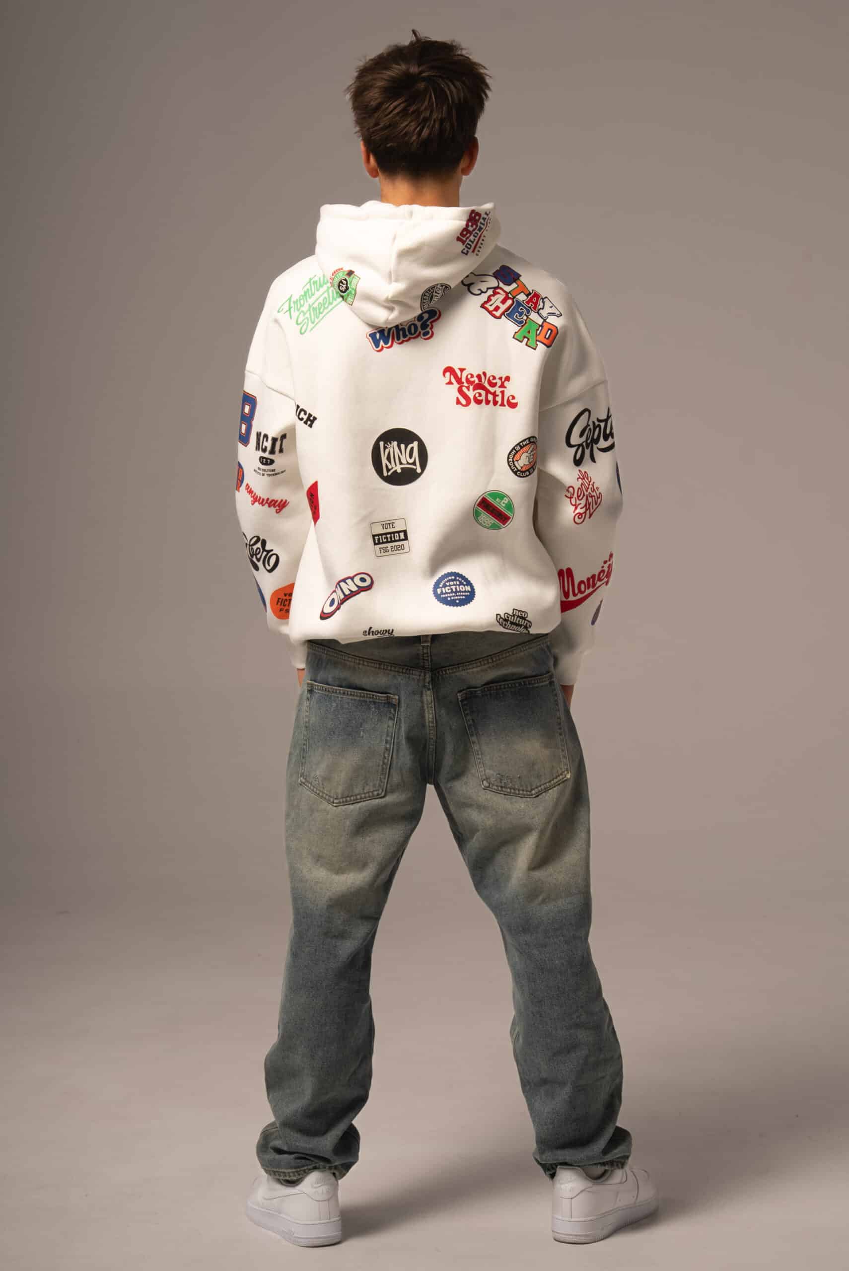 Biała bluza męska w kolorowe wzory
