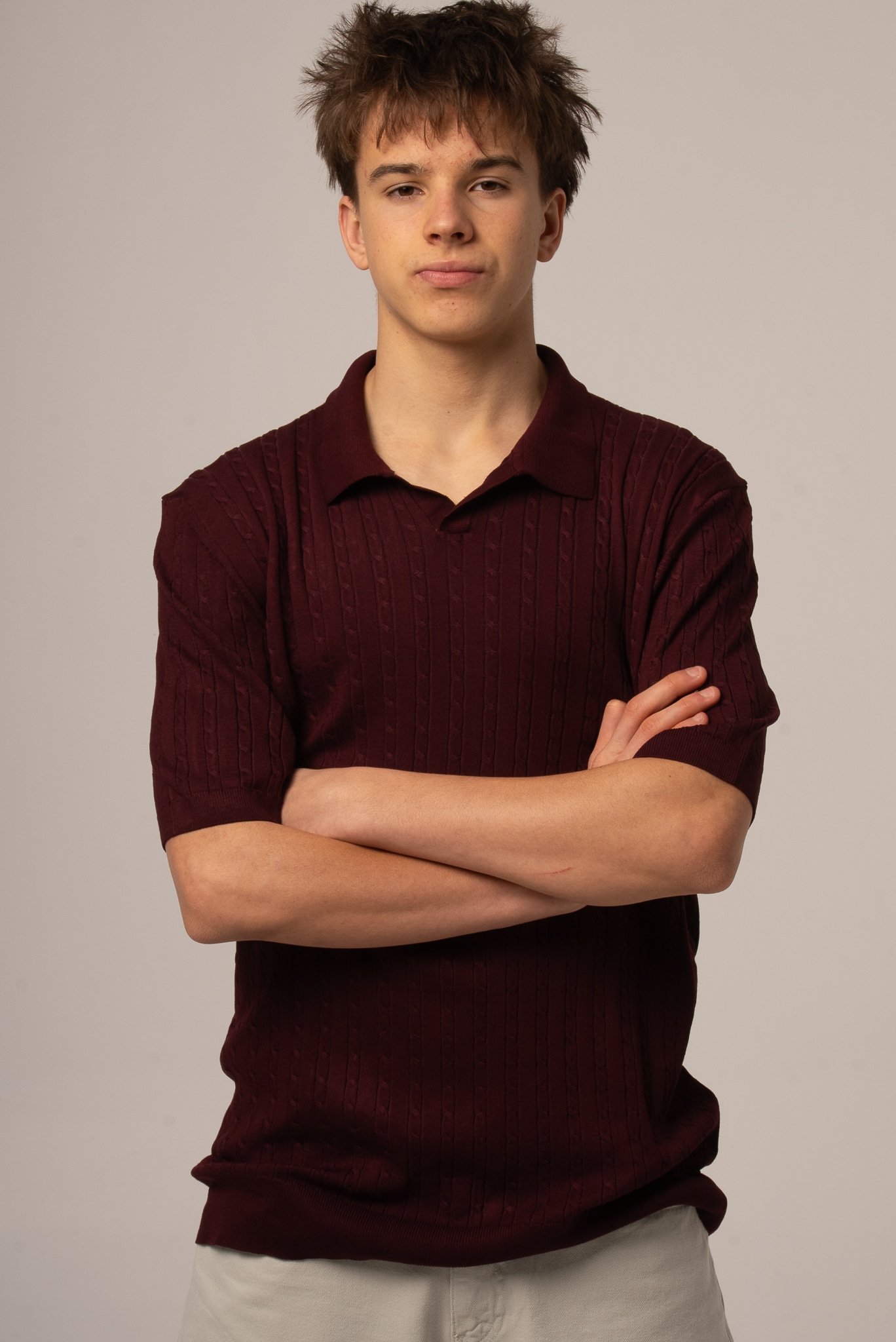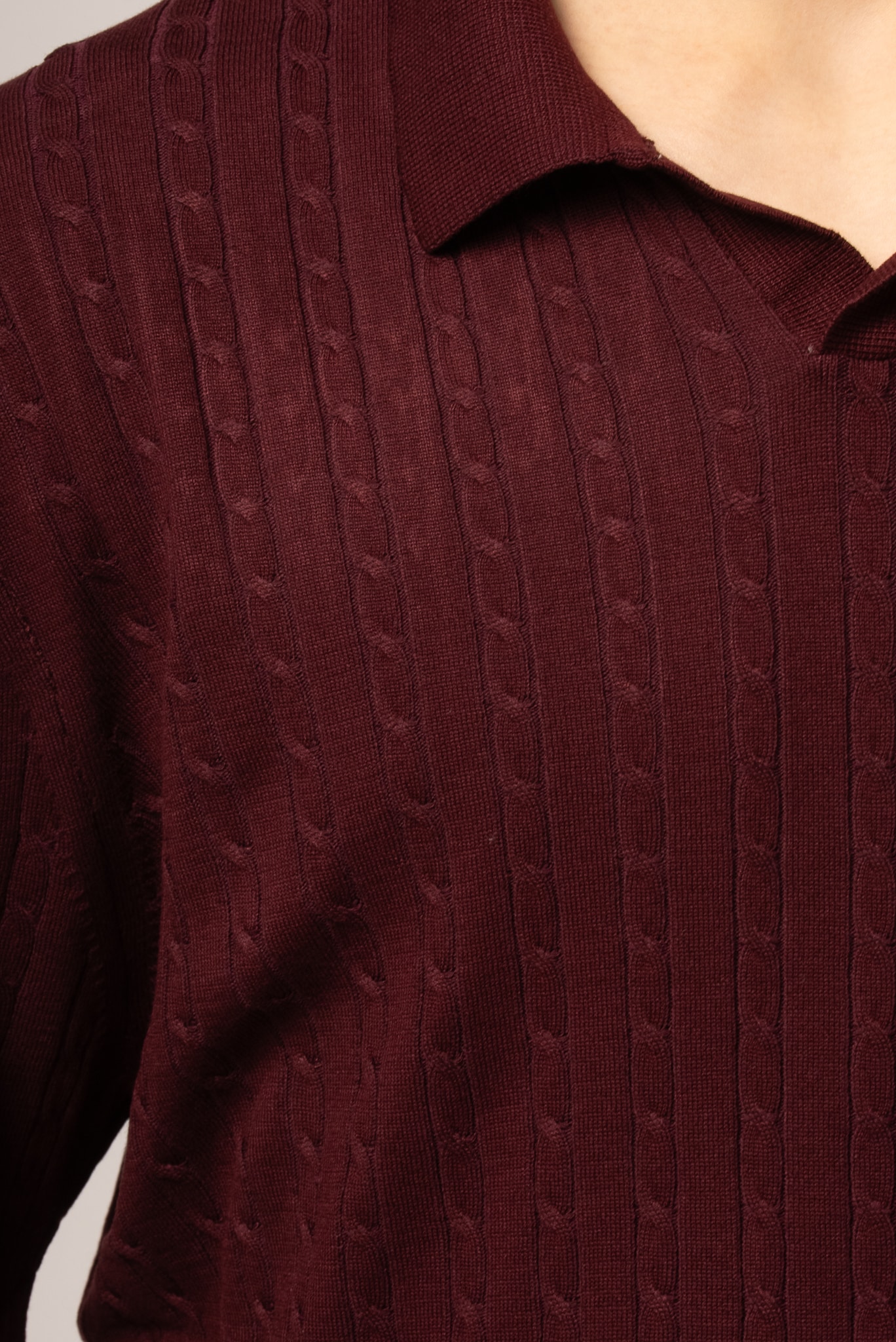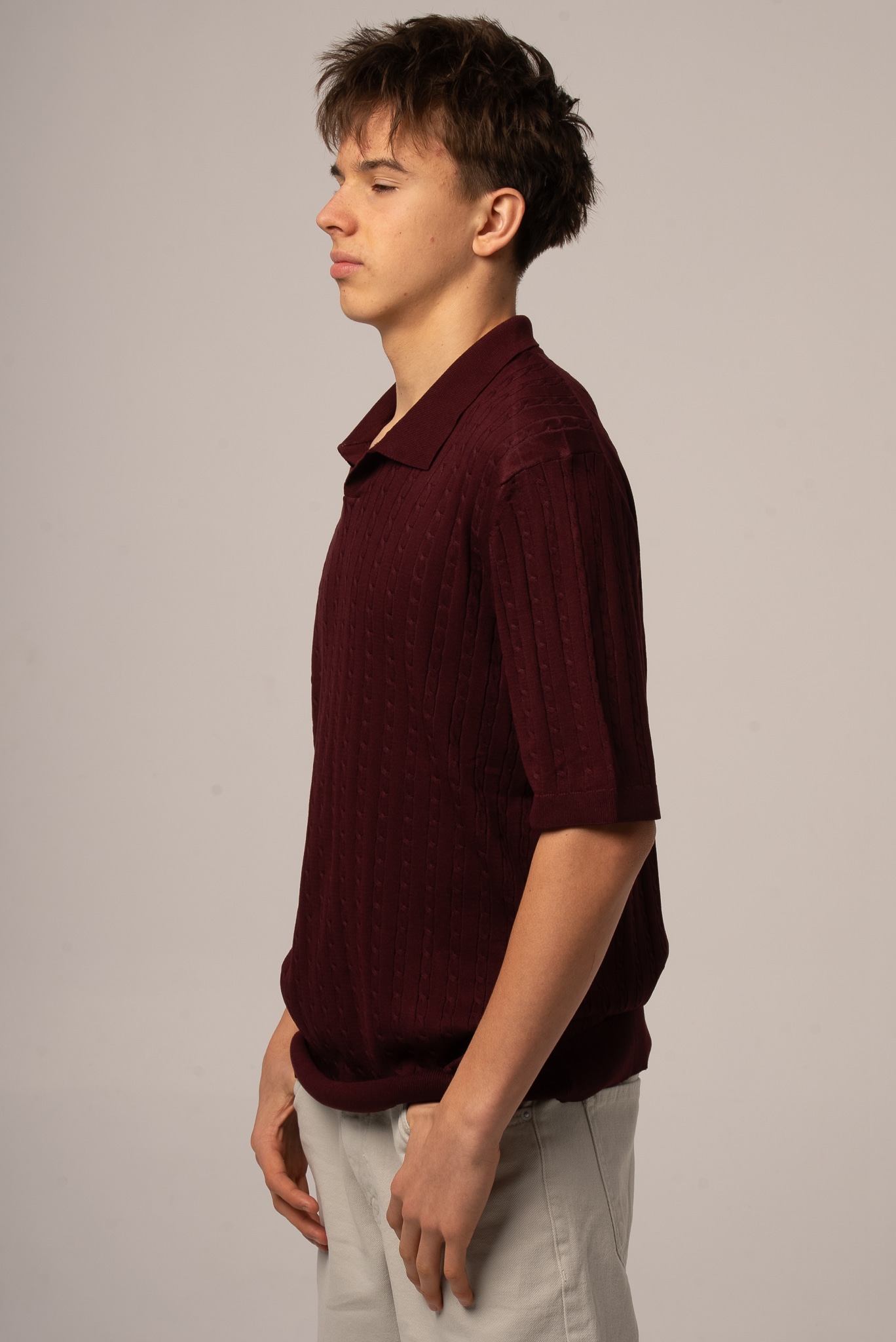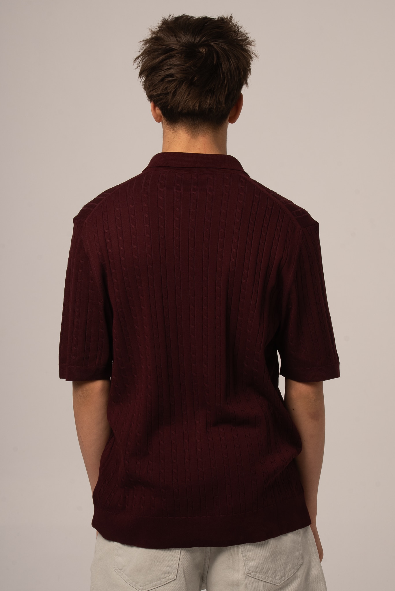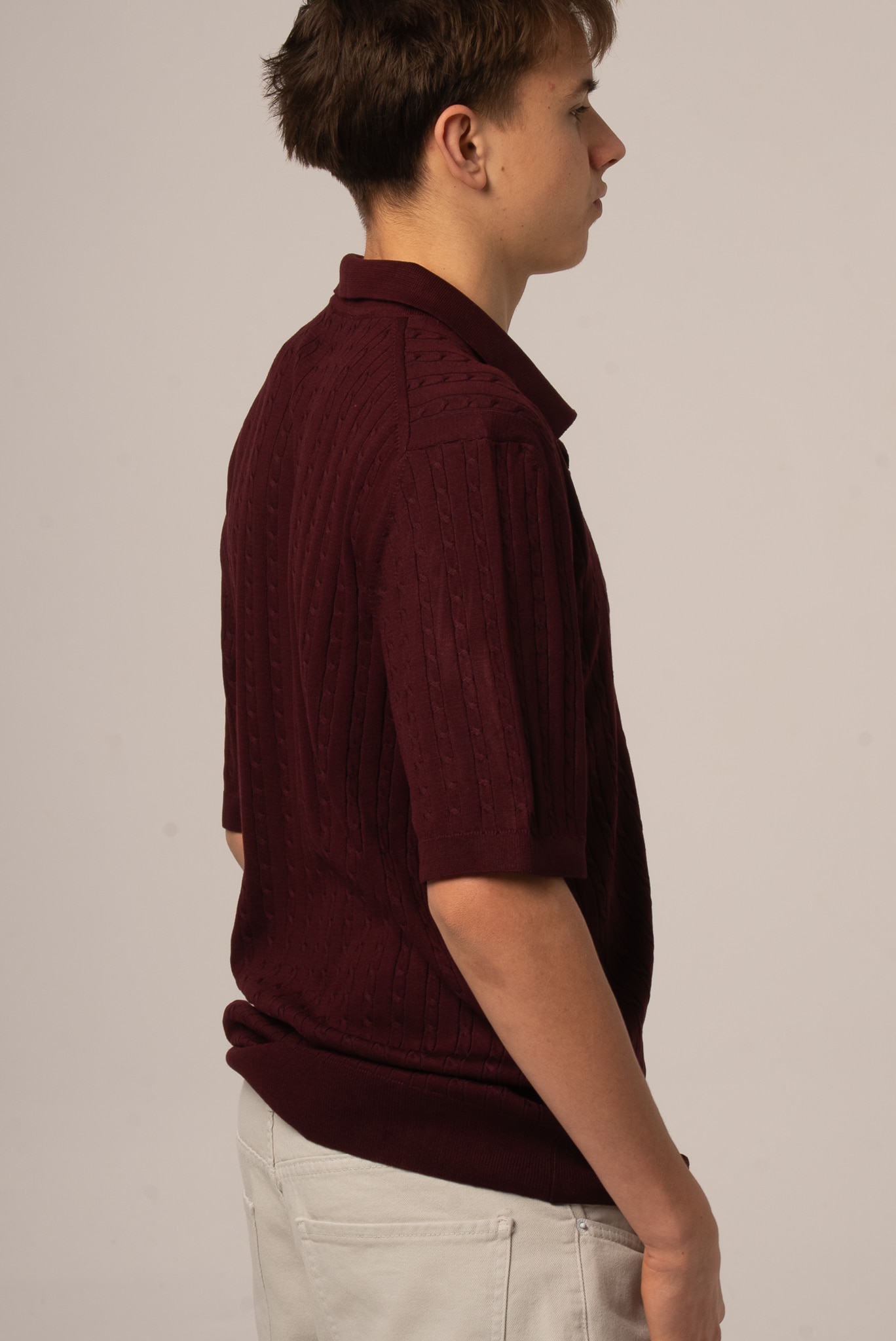 Bordowe polo męskie z dekoltem v z dzianinowej tkaniny