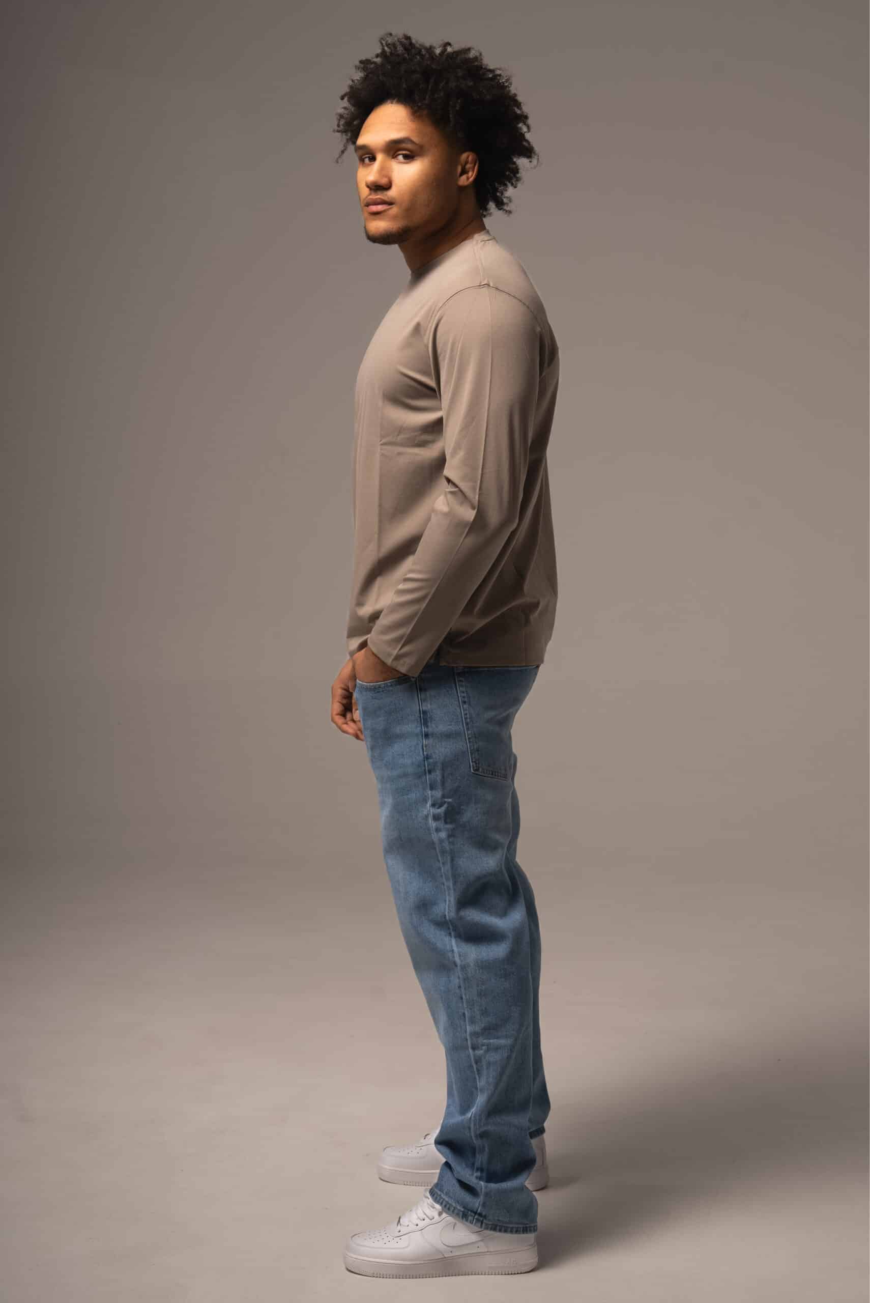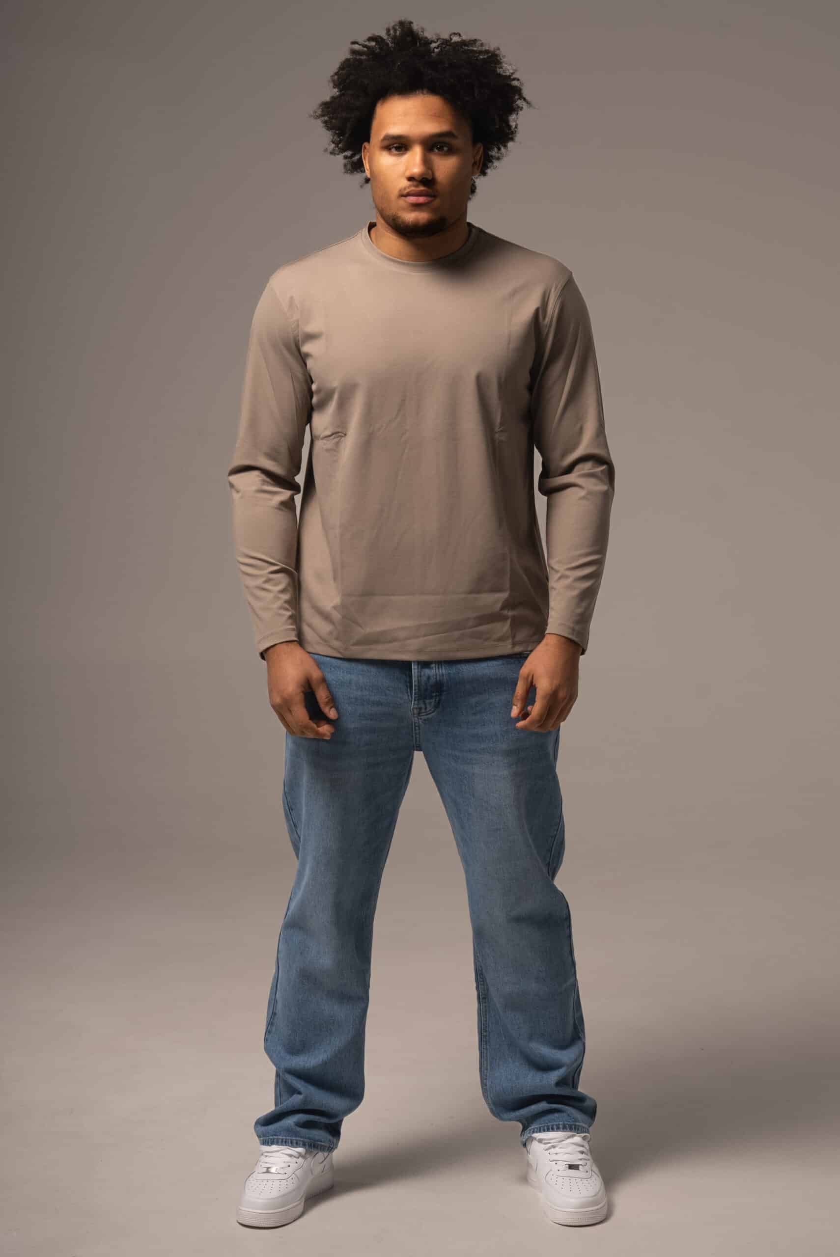 Ciemnobeżowy longsleeve męski