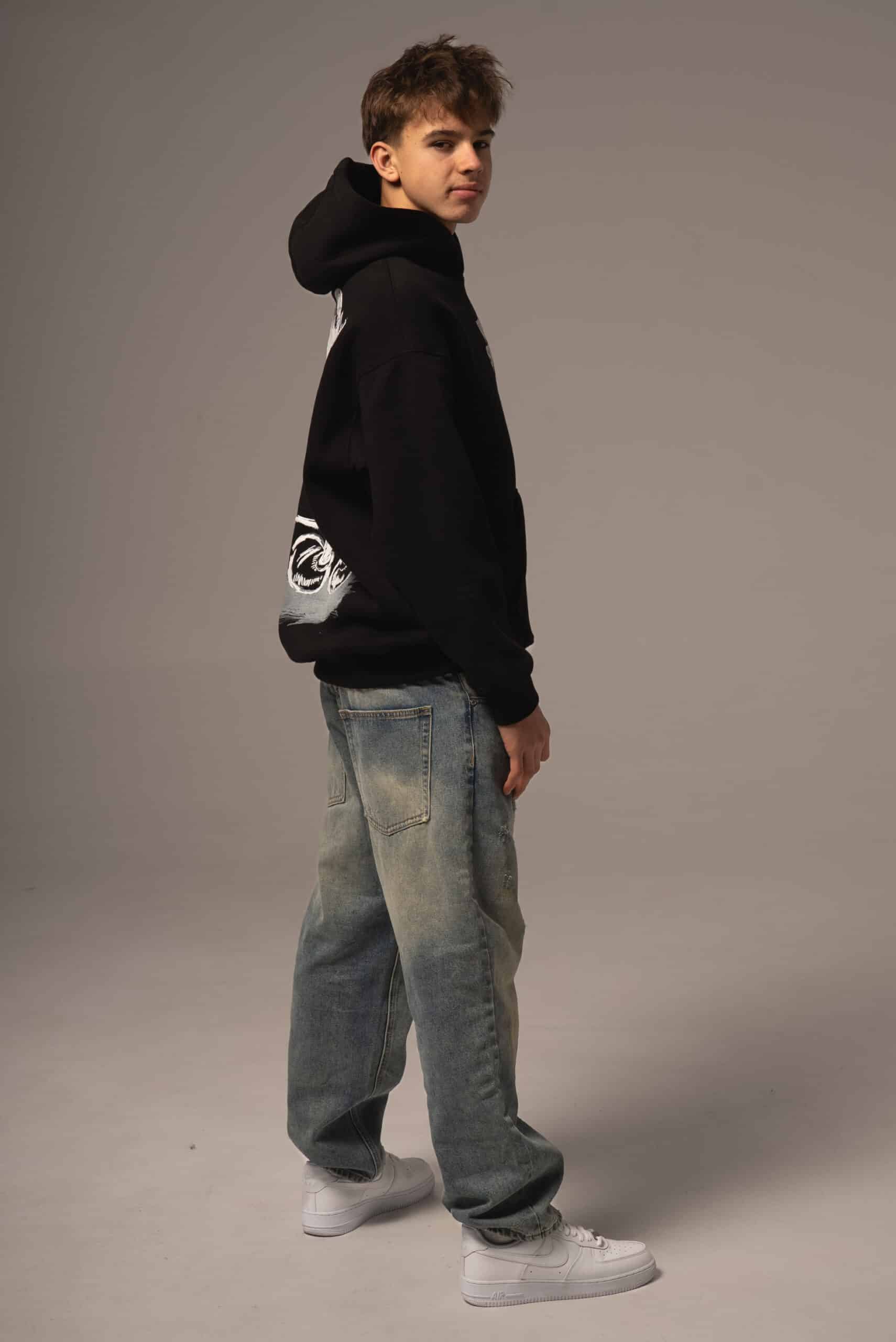 Czarna bluza męska oversize z nadrukiem na plecach