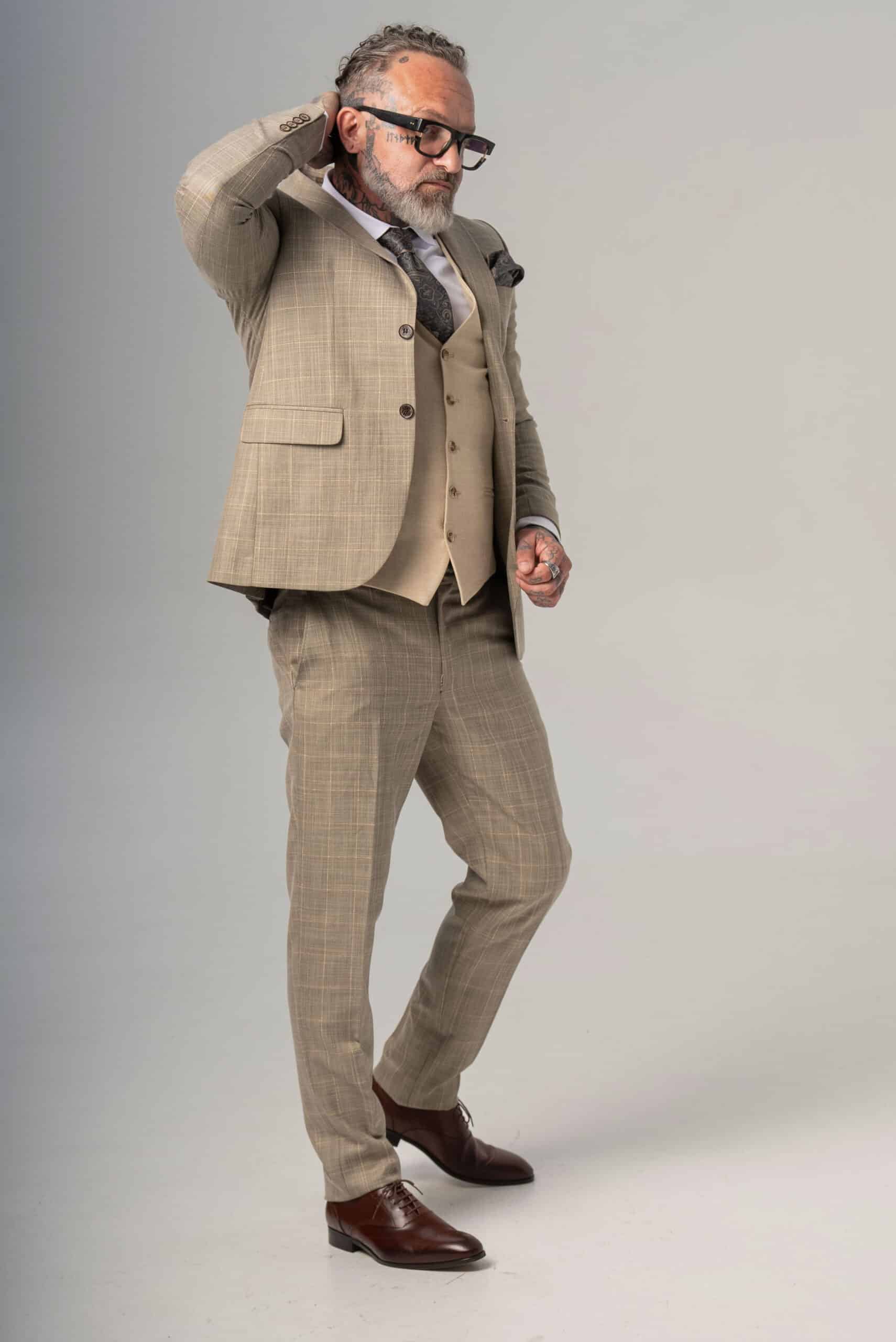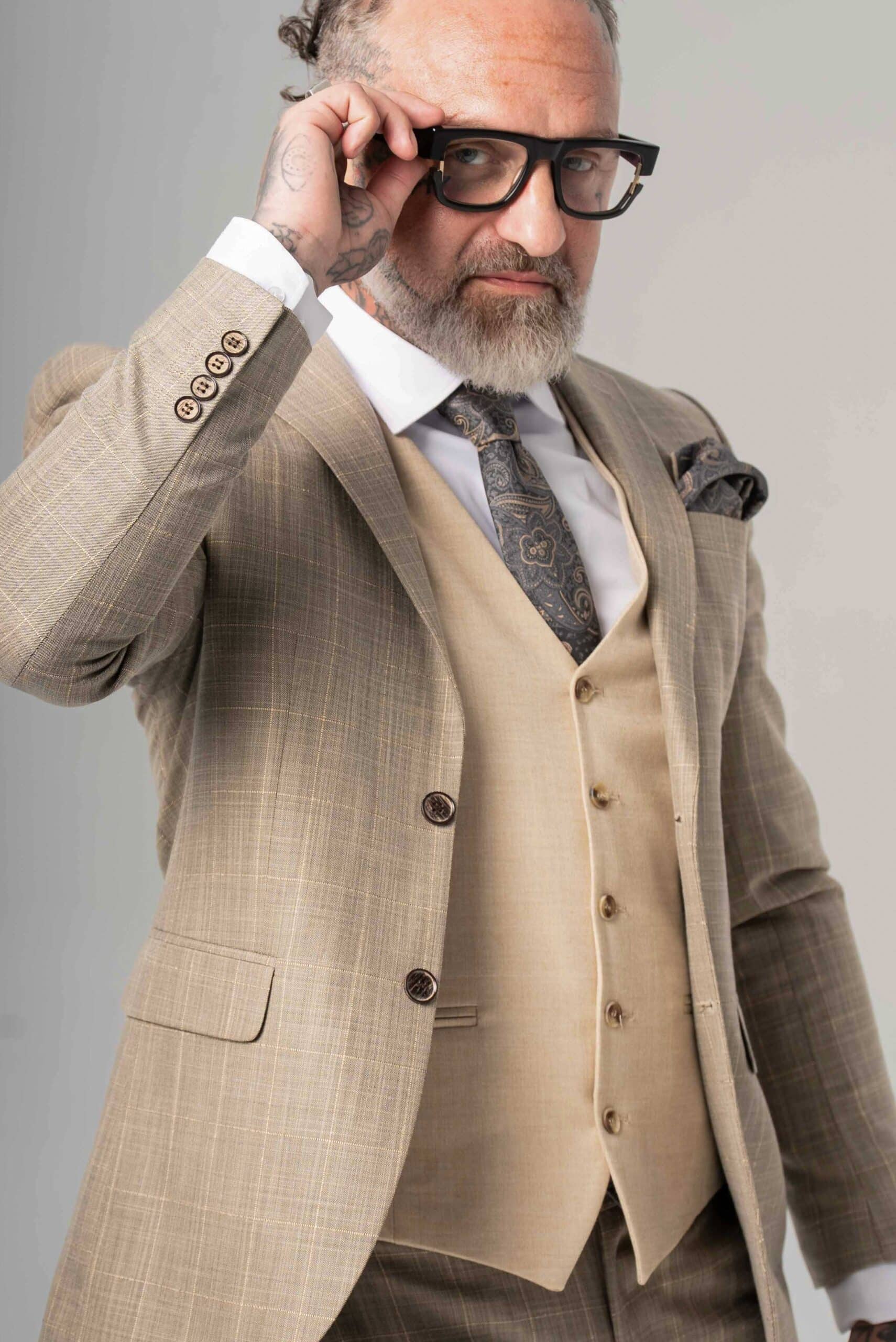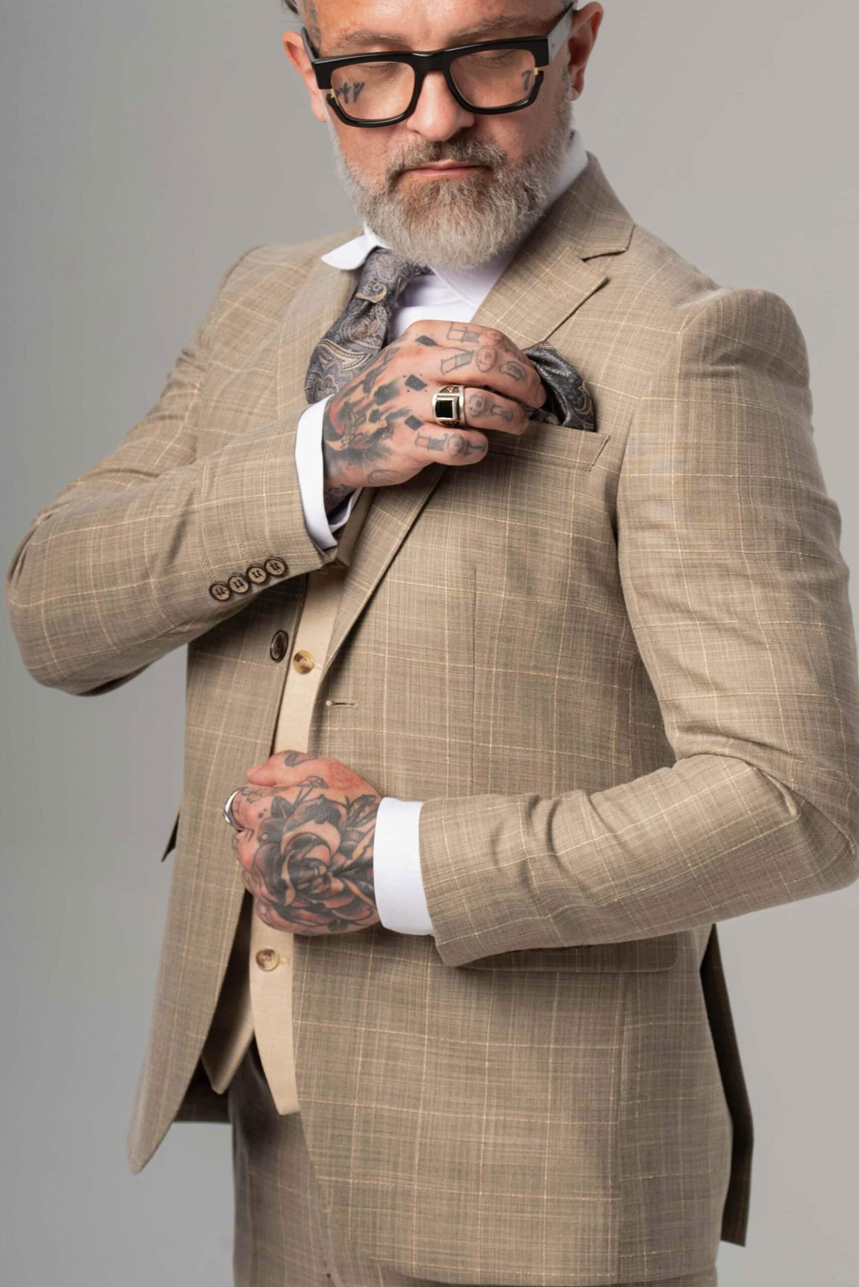 Dlaczego warto wybrać garnitur beżowy w kratę SZUBA Collection?