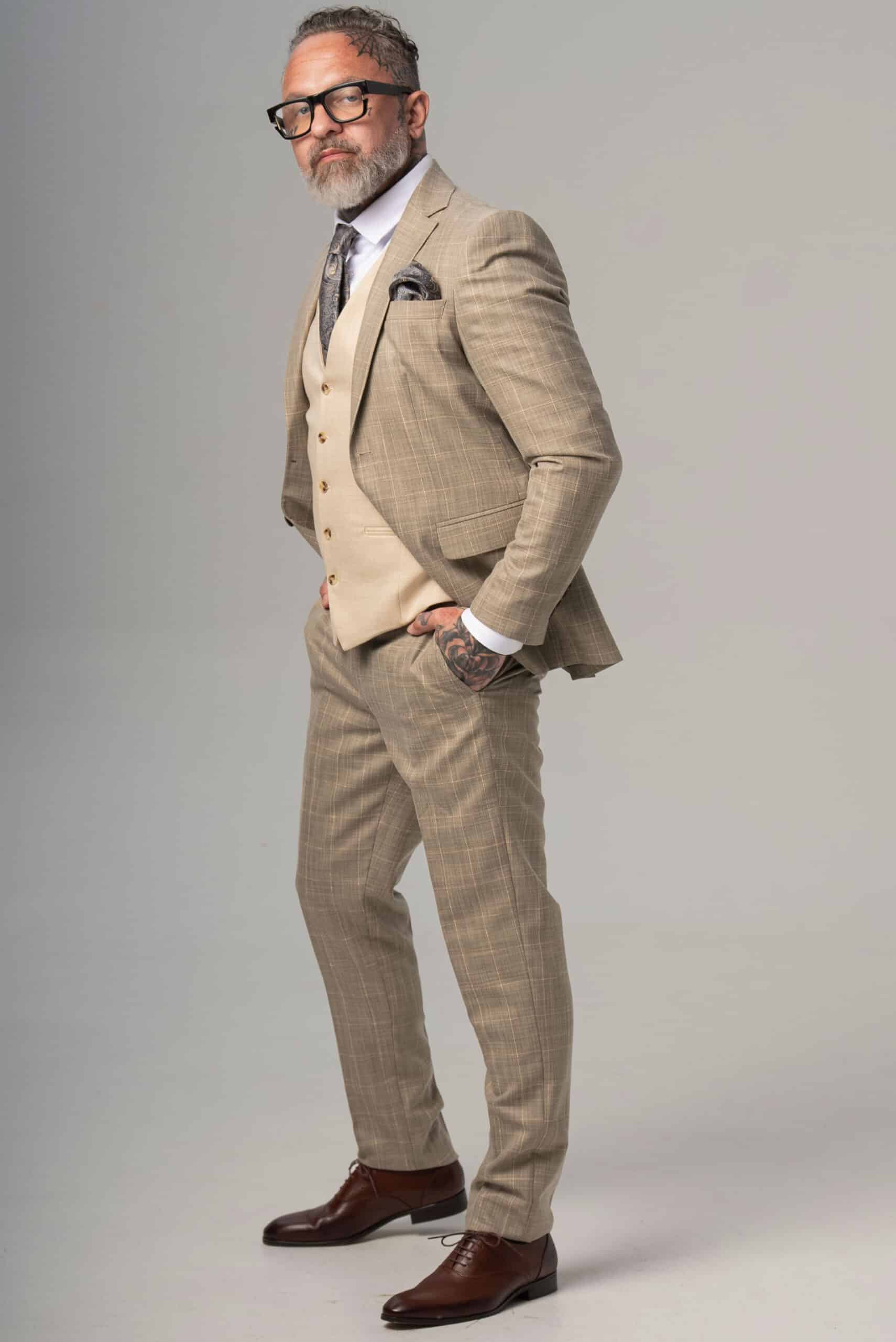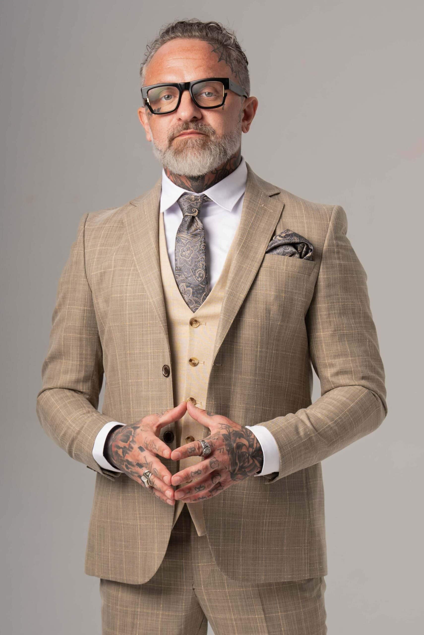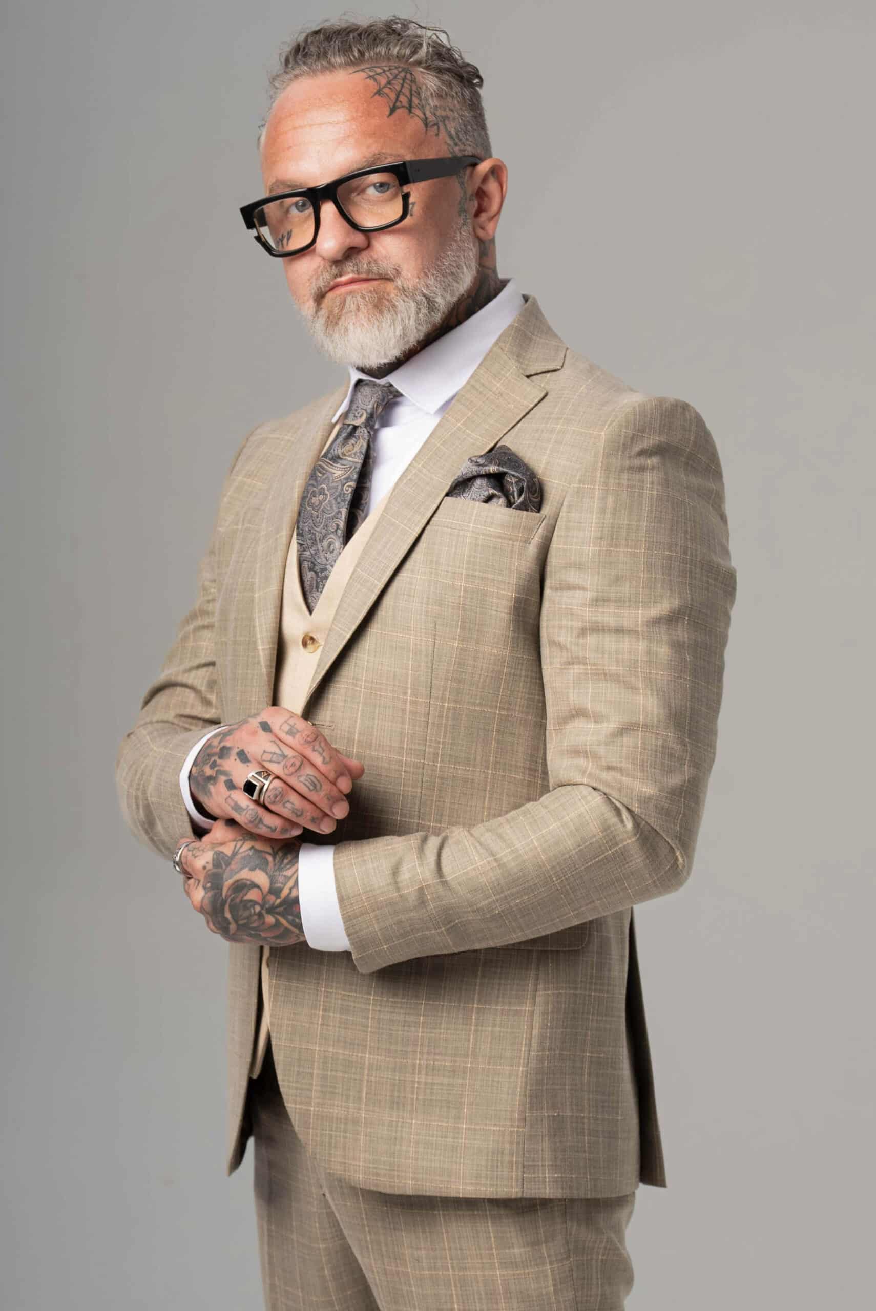 Dlaczego warto wybrać garnitur beżowy w kratę SZUBA Collection?
