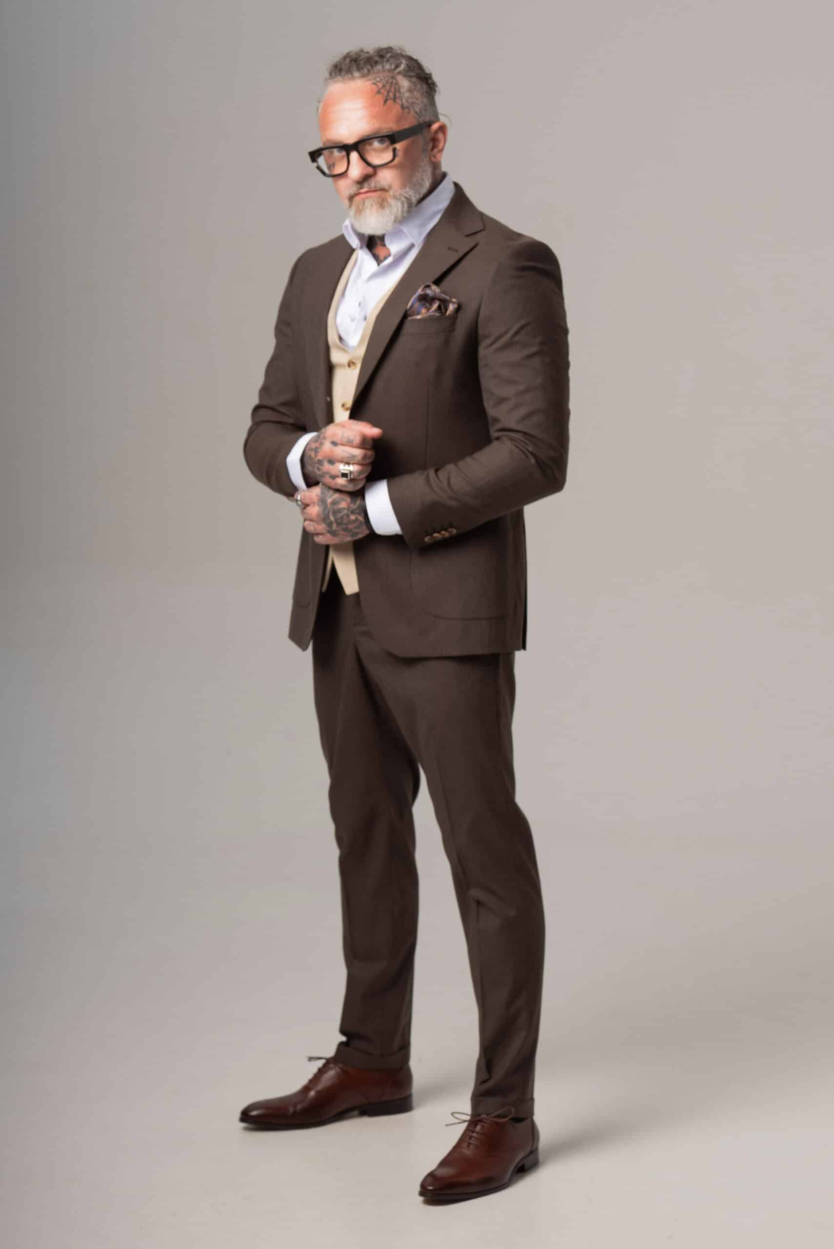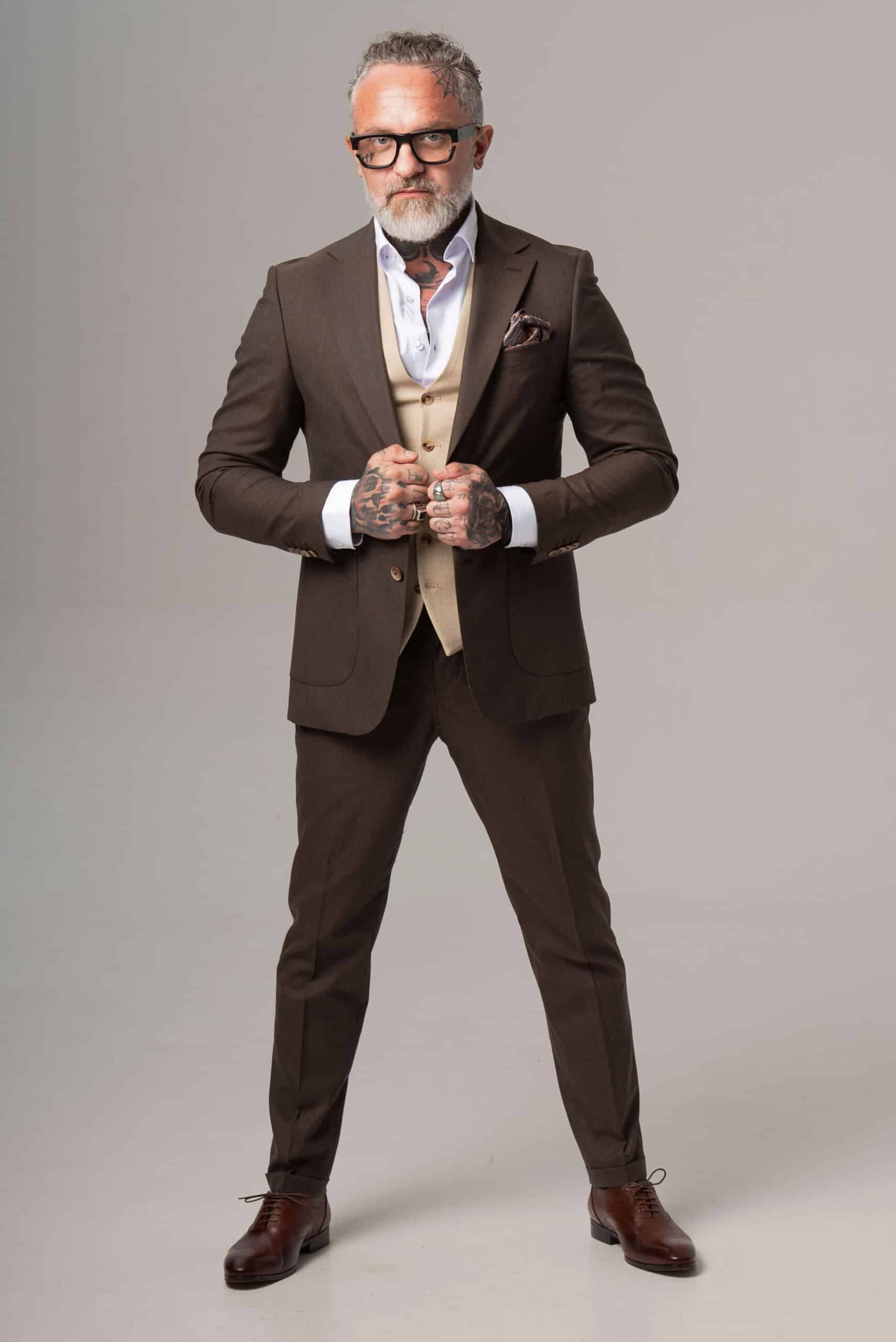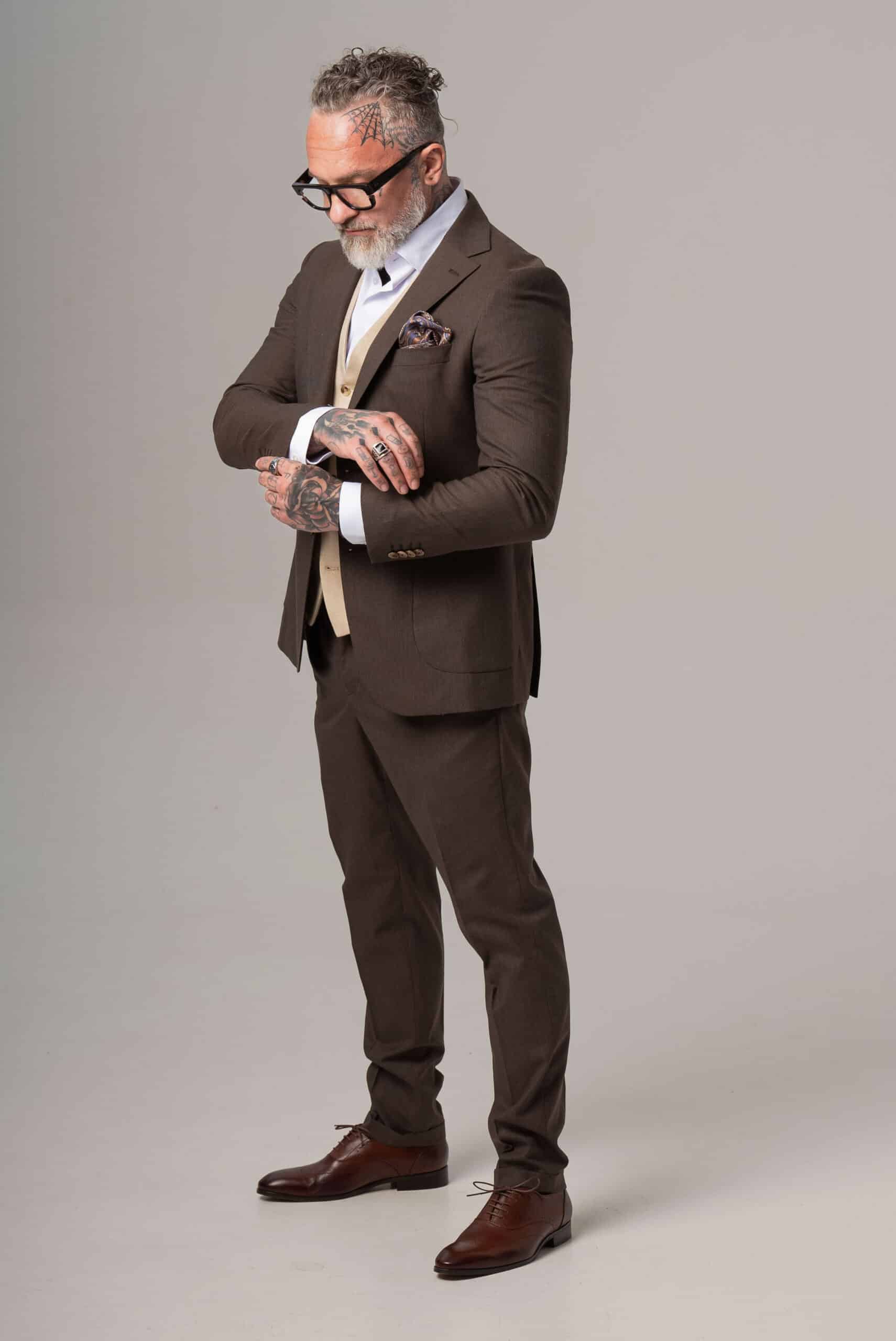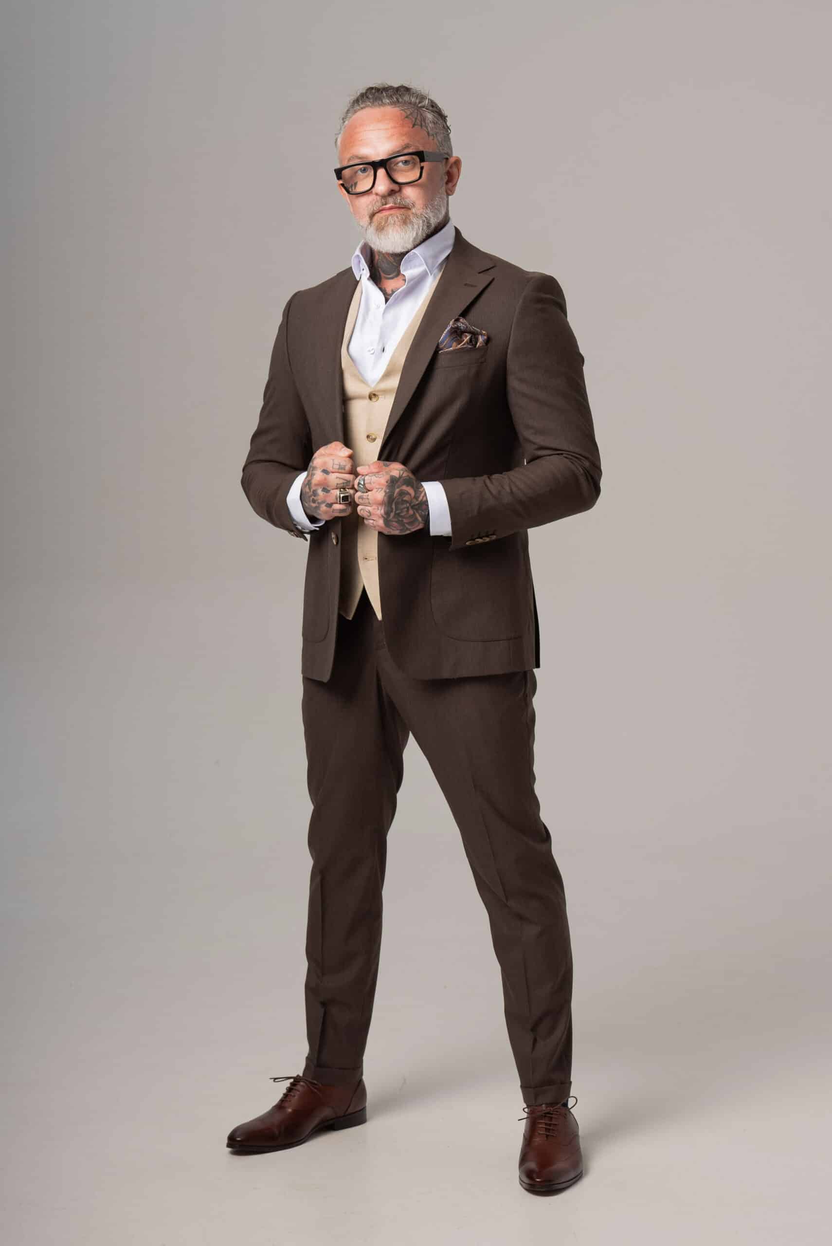 Z garniturem ciemnobrązowym od SZUBA Collection pokażesz swój styl i pewność siebie.