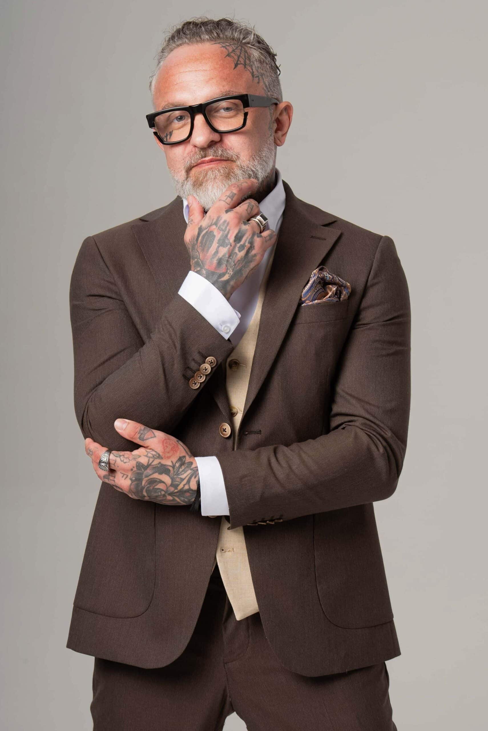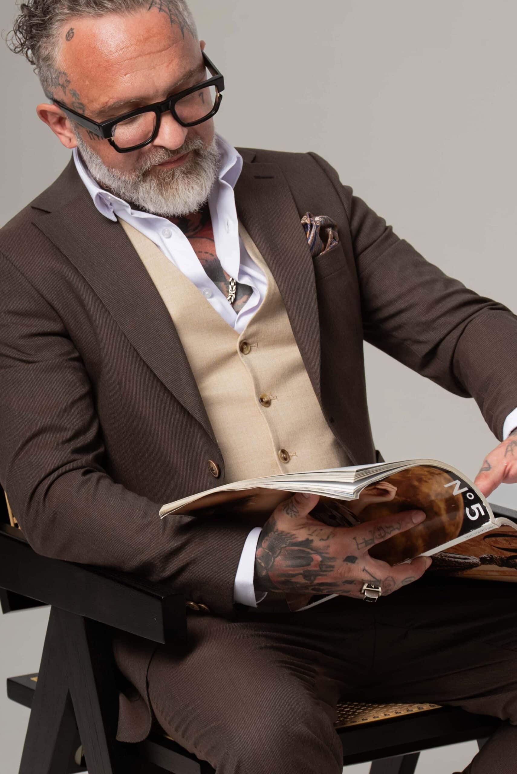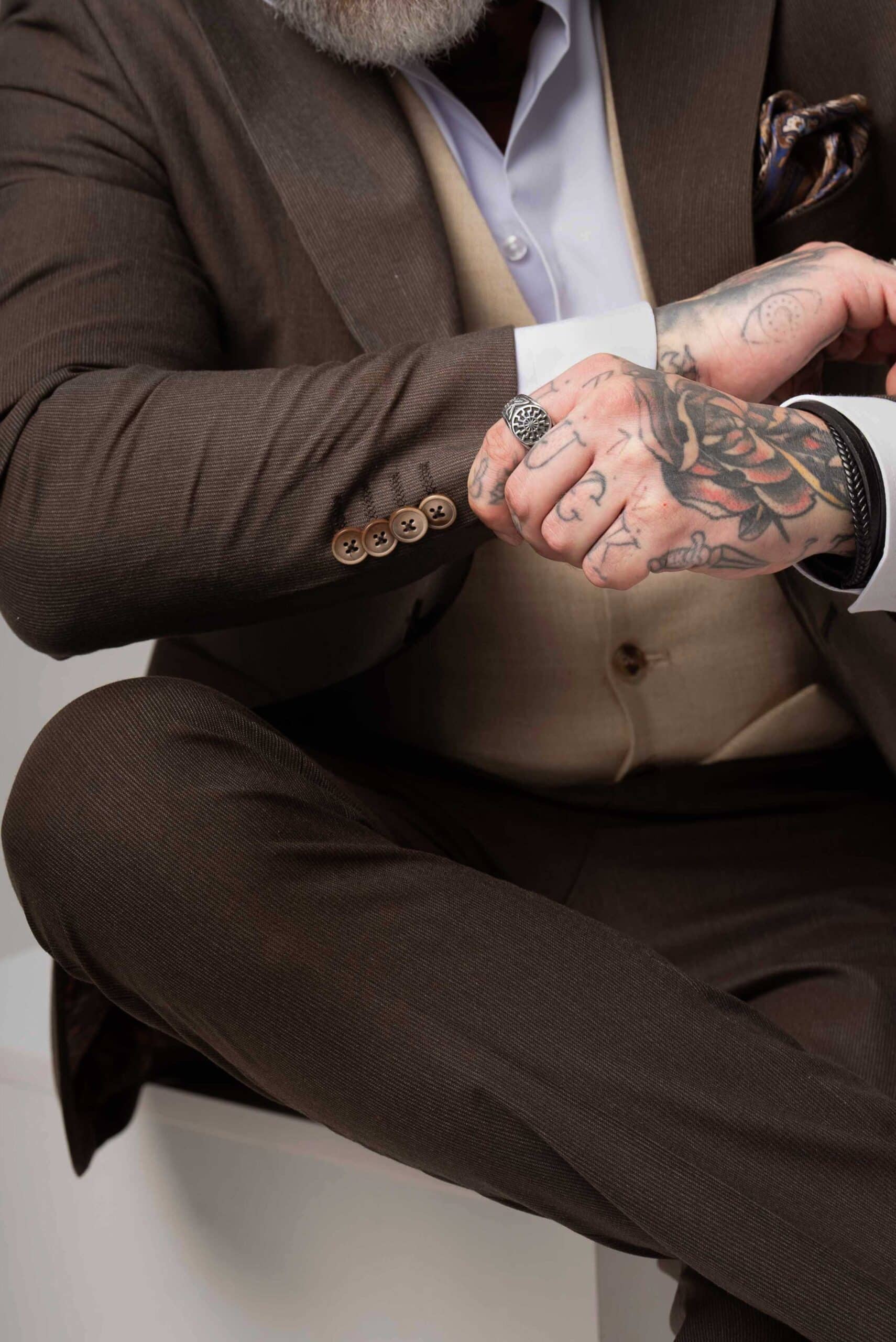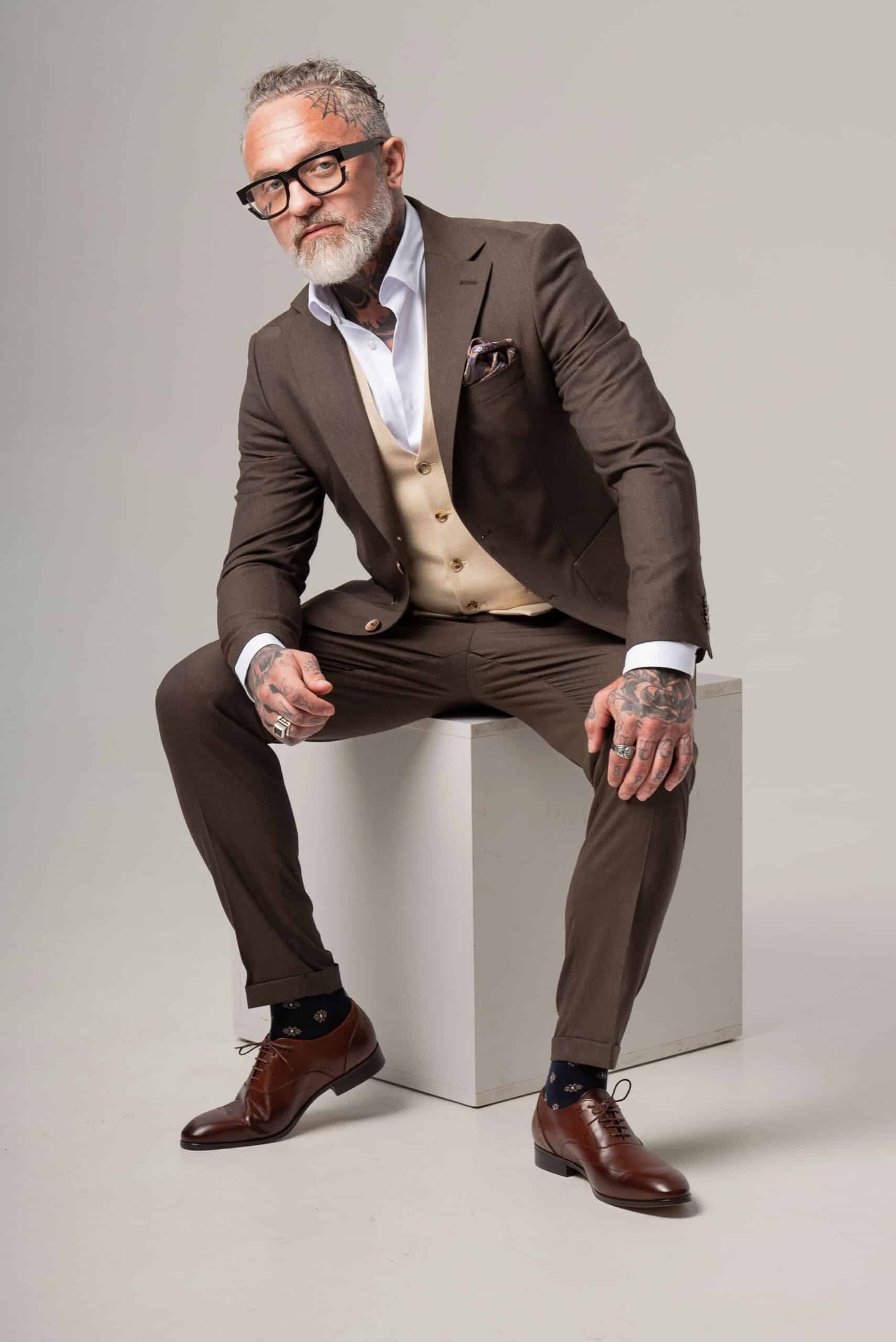 Z garniturem ciemnobrązowym od SZUBA Collection pokażesz swój styl i pewność siebie.
