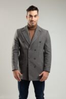 Elegancka odsłona gładkiego, dwurzędowego, grafitowego płaszcza męskiego. Wykonany z wysokiej jakości materiału (wełna 50%, wiskoza 20%, poliester 30%) wywiera wyjątkowe wrażenie na miłośnikach mody męskiej.