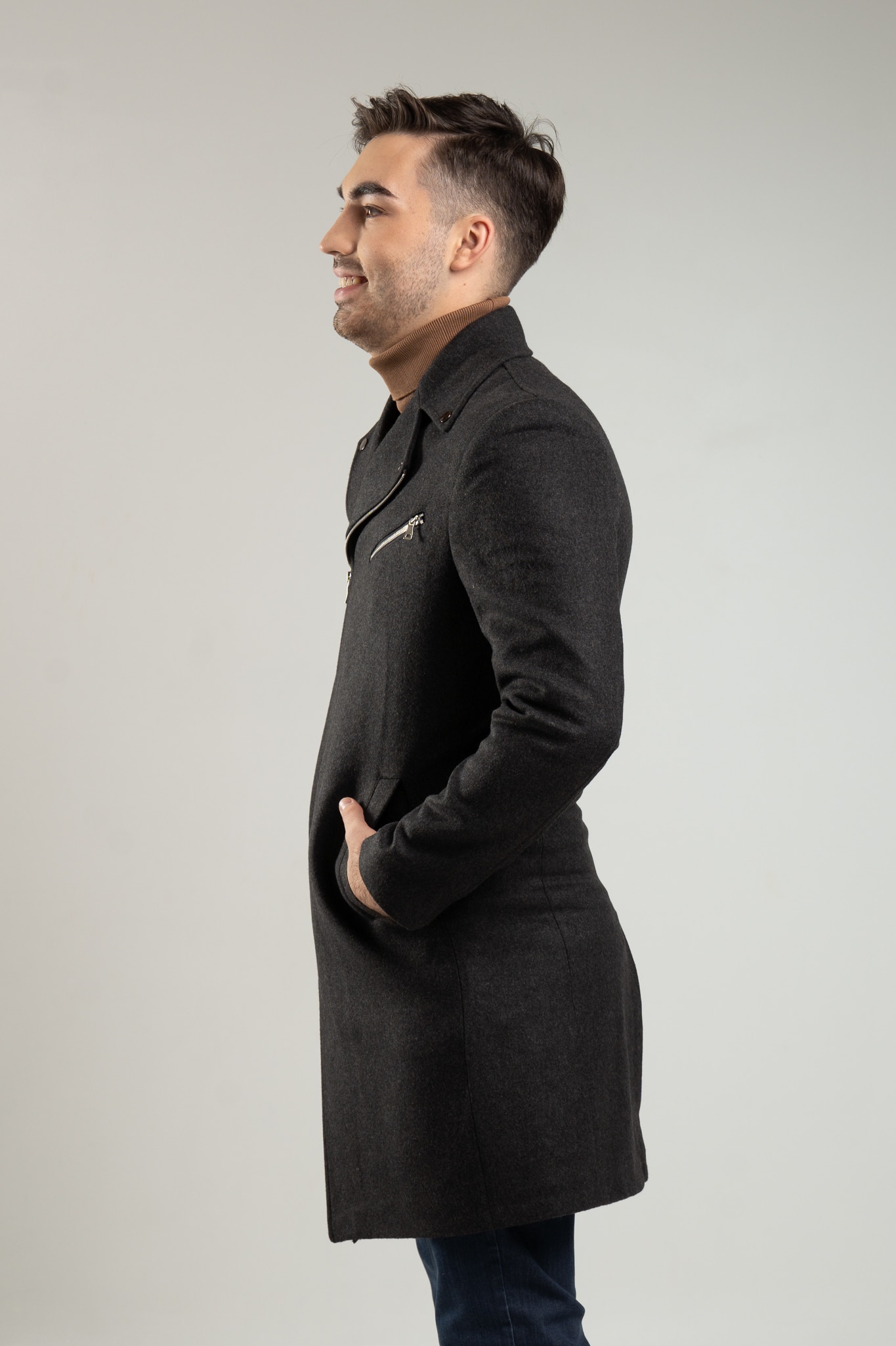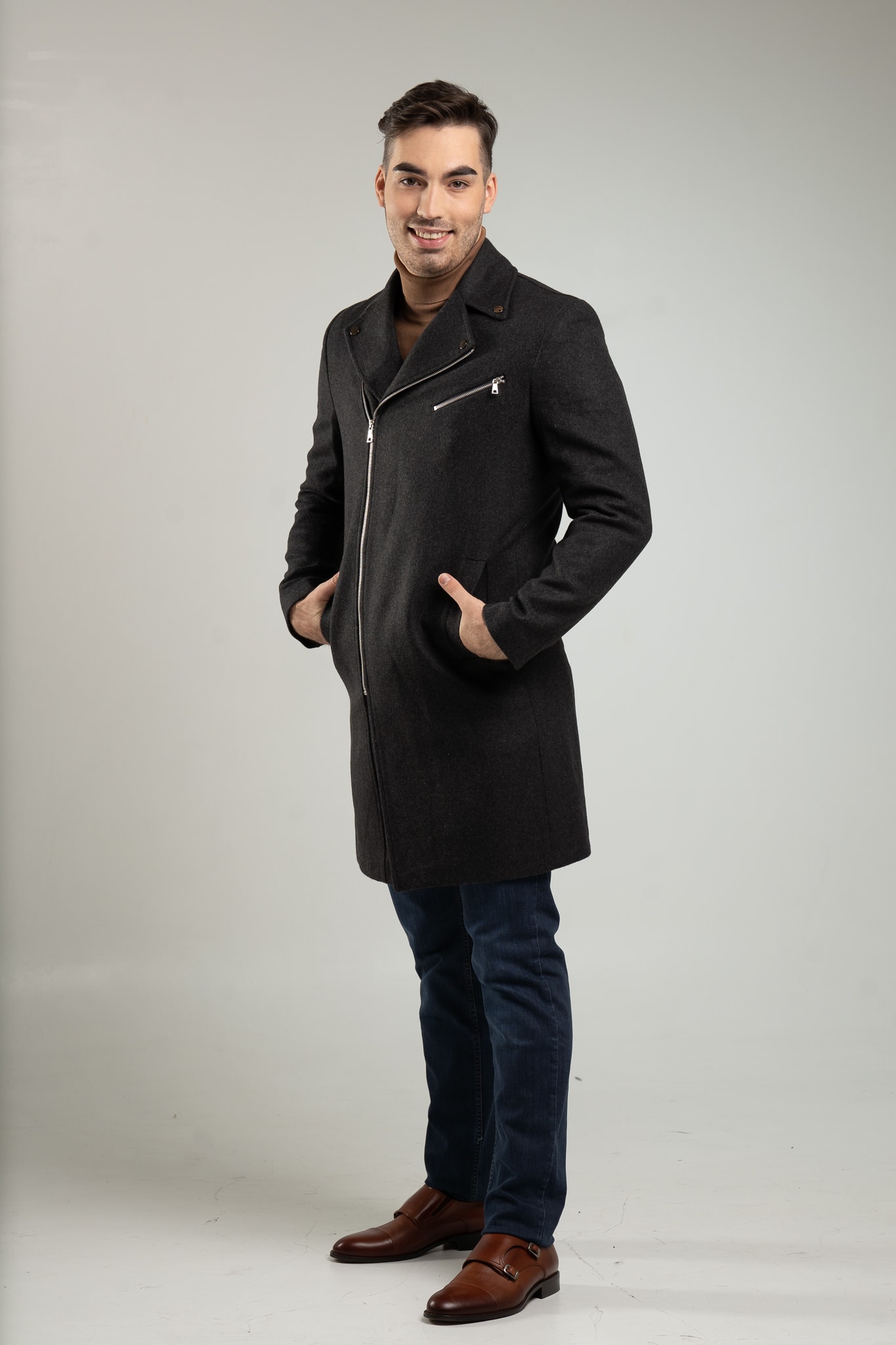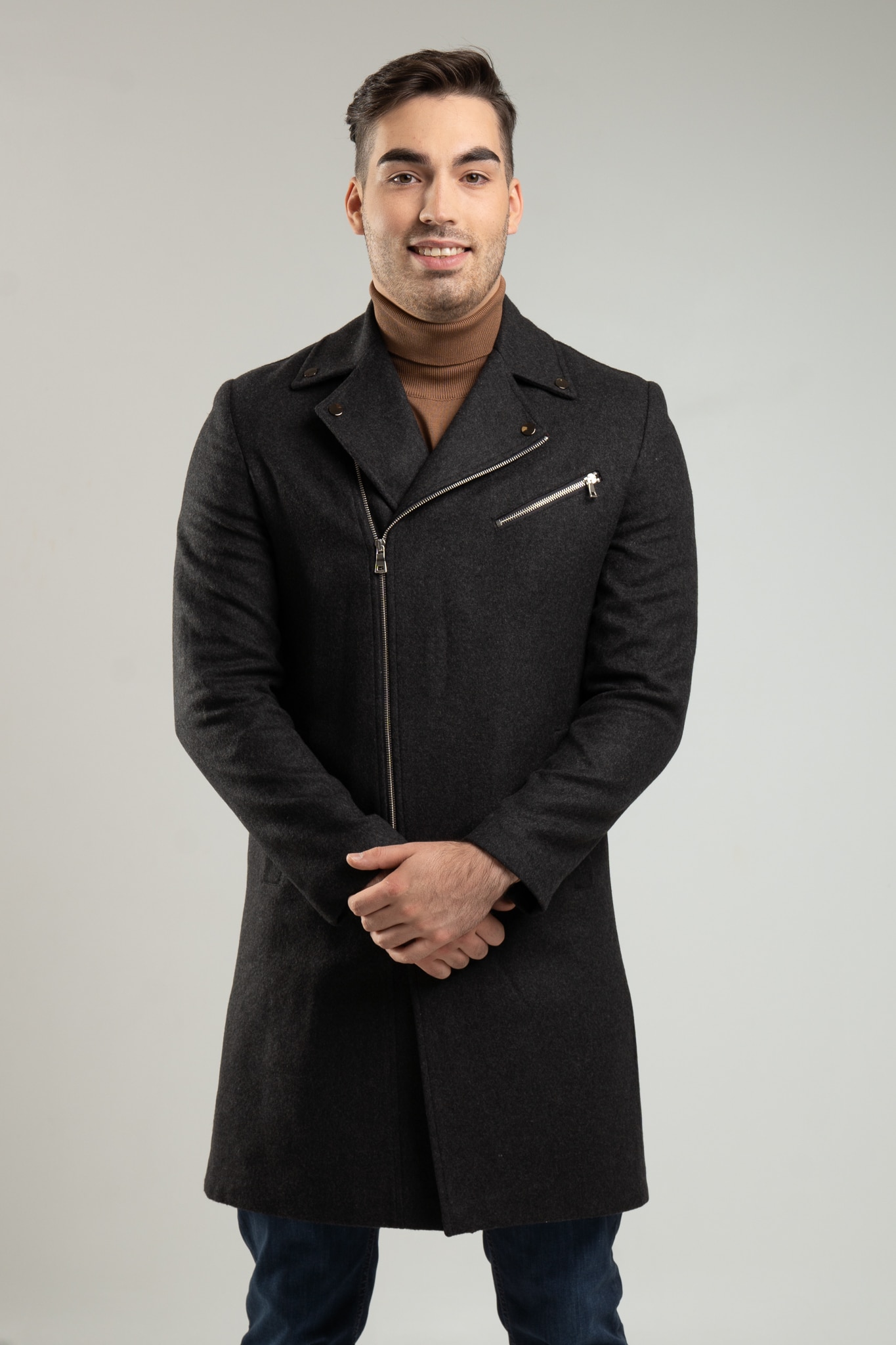 – płaszcz męski w kolorze grafitowym