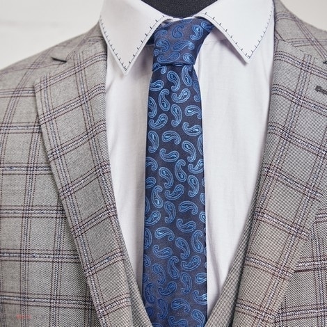Szykowny zestaw stworzy z granatowym bądź szarym garniturem. Gładkim bądź jednym z najbardziej pożądanych w tym sezonie – garniturem w kratę. Idealnym tłem dla stylowego garnituru oraz eleganckiego dodatku będzie klasyczna biała koszula.