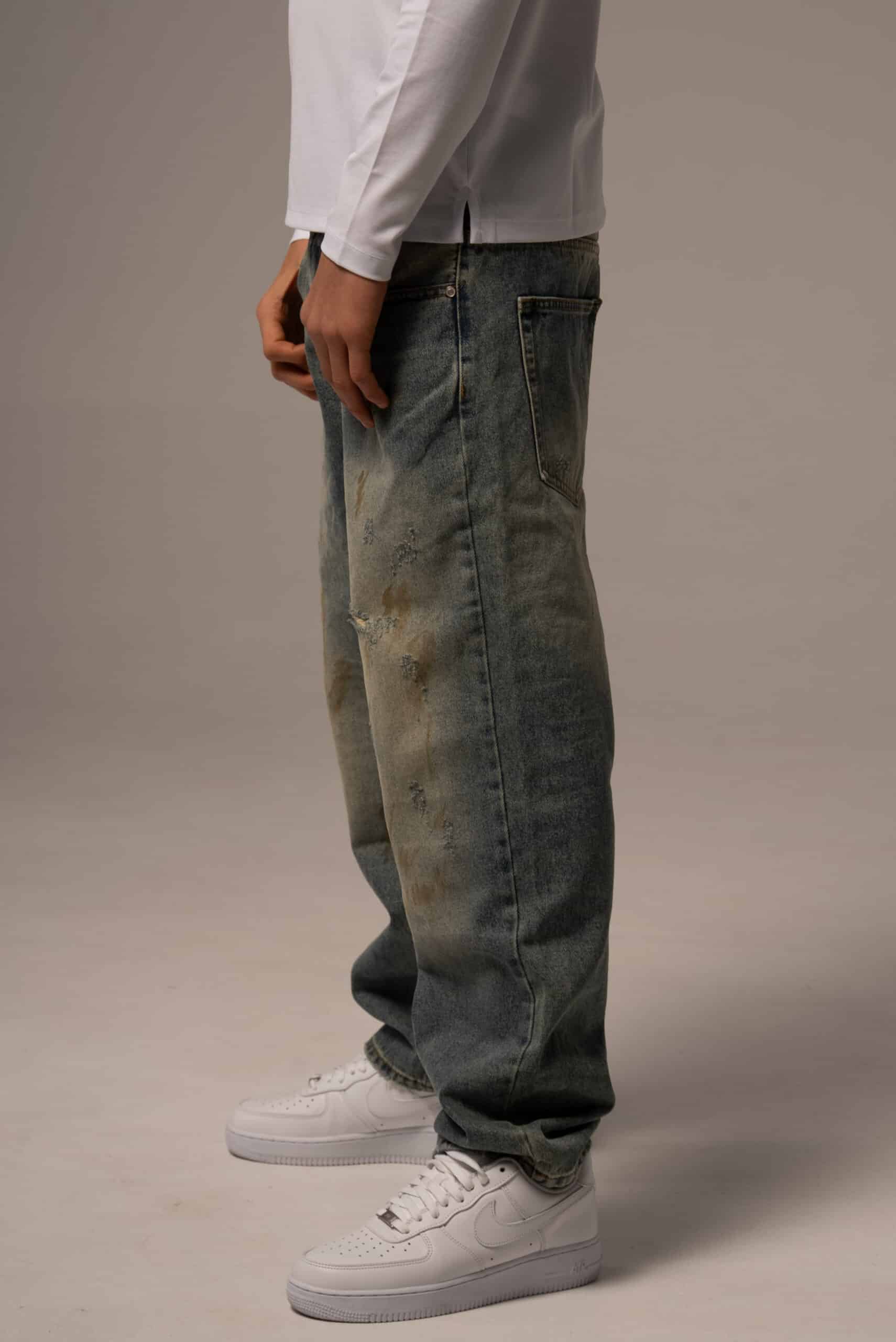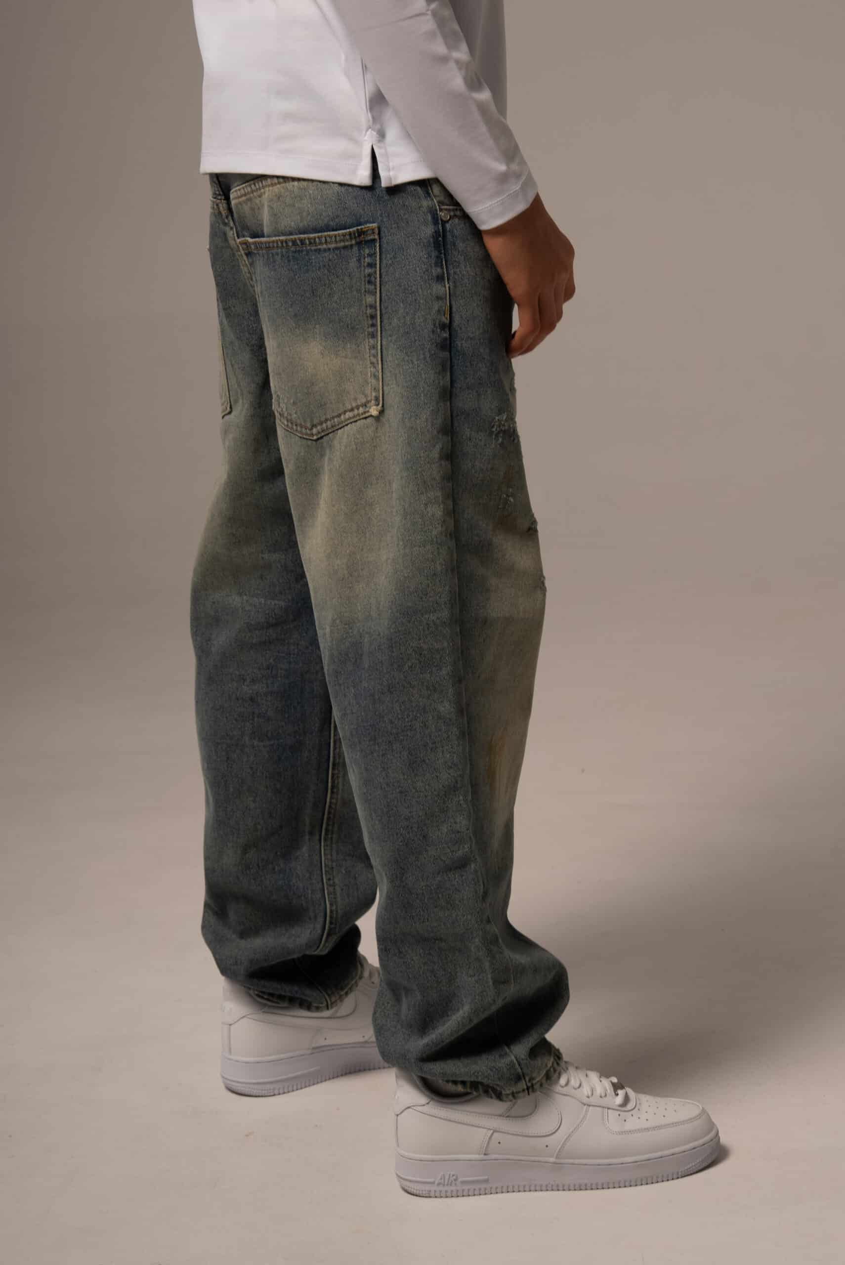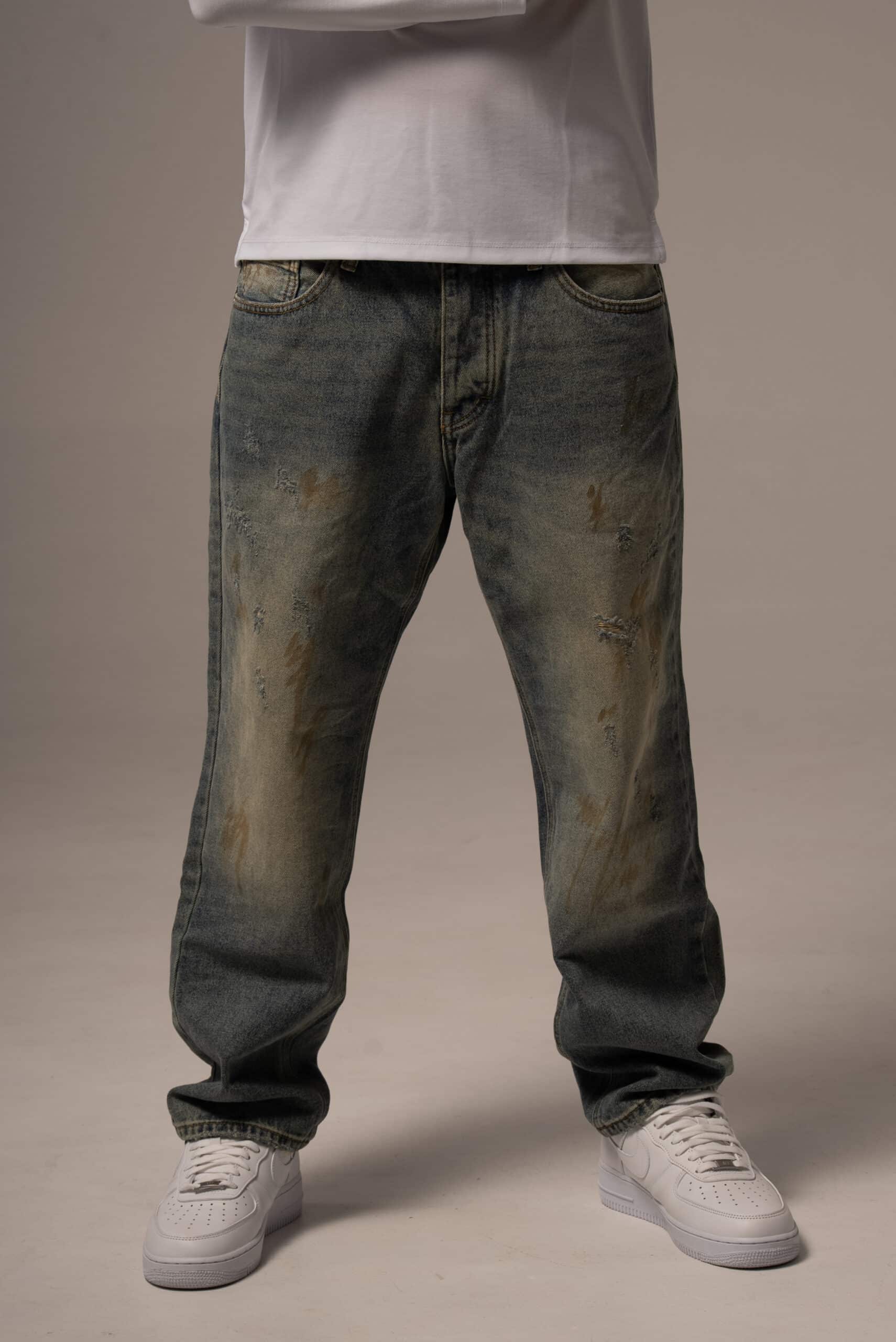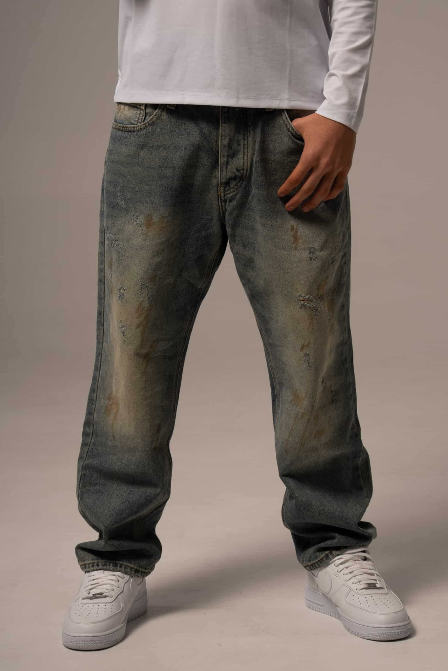 Jeansy męskie o kroju baggy z przetarciami