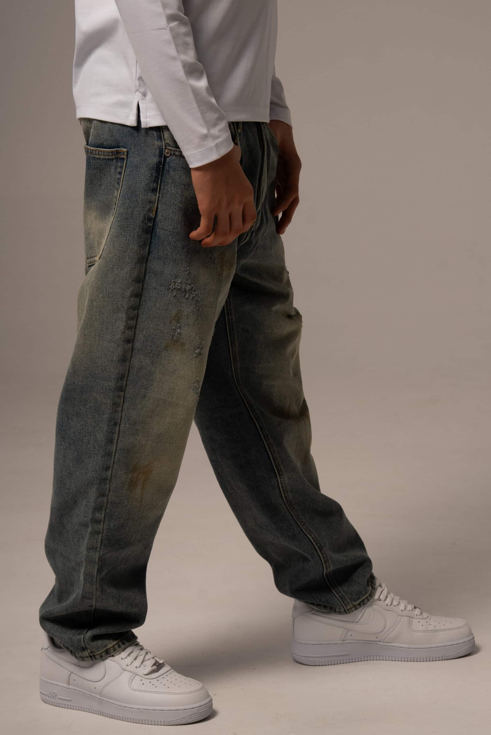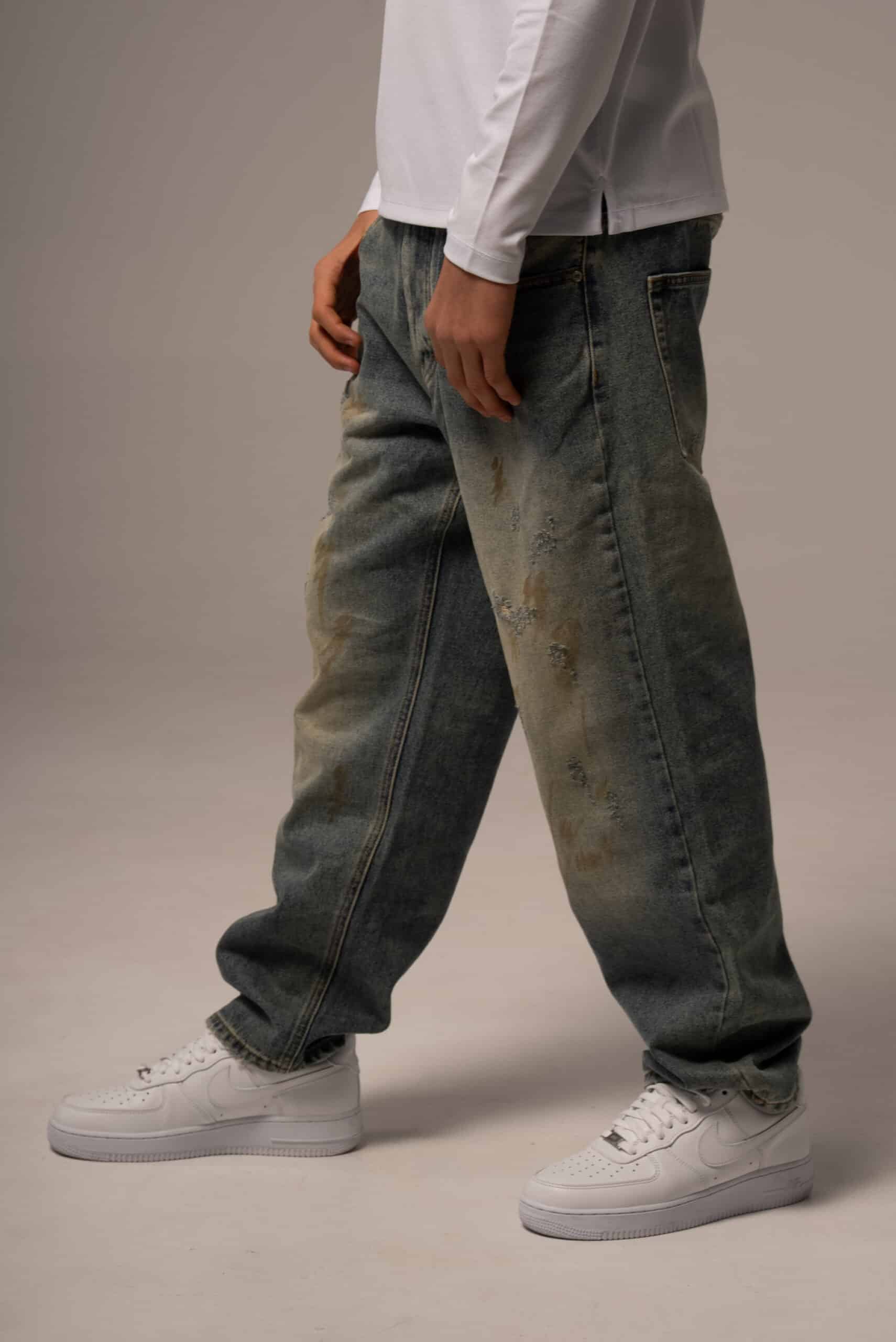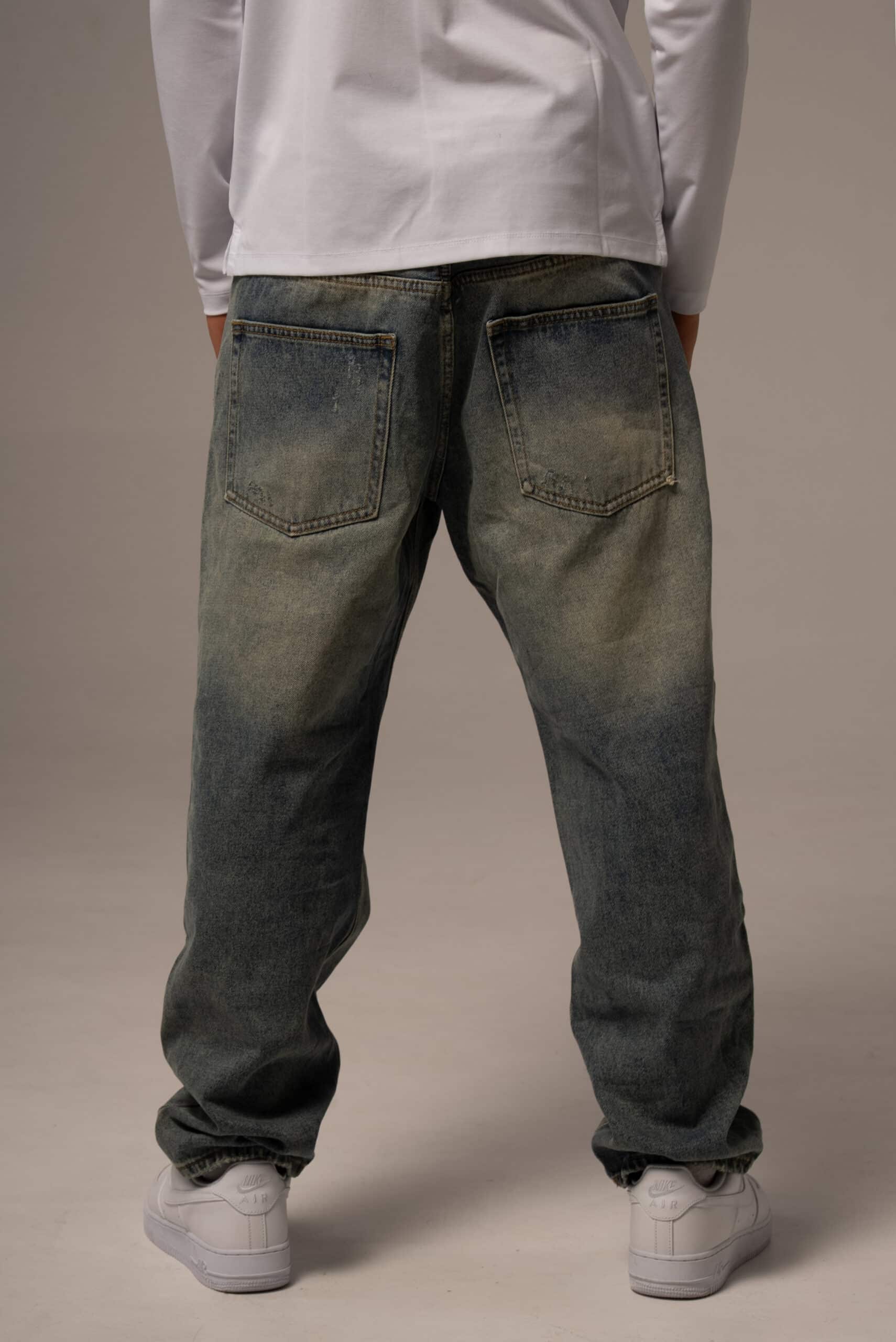 Jeansy męskie o kroju baggy z przetarciami