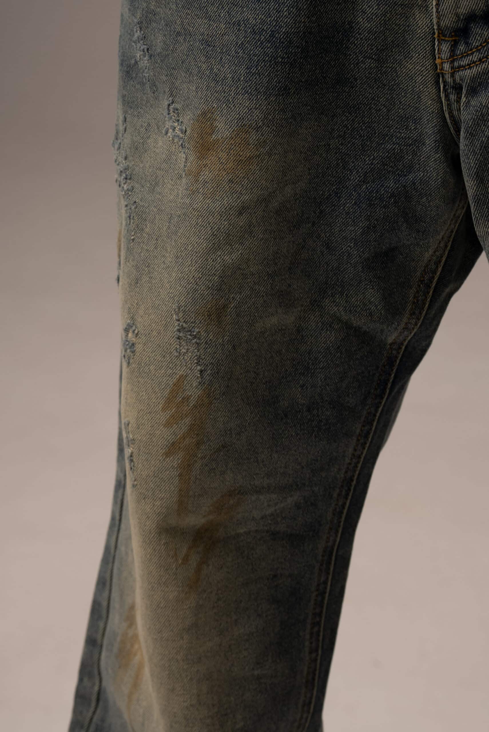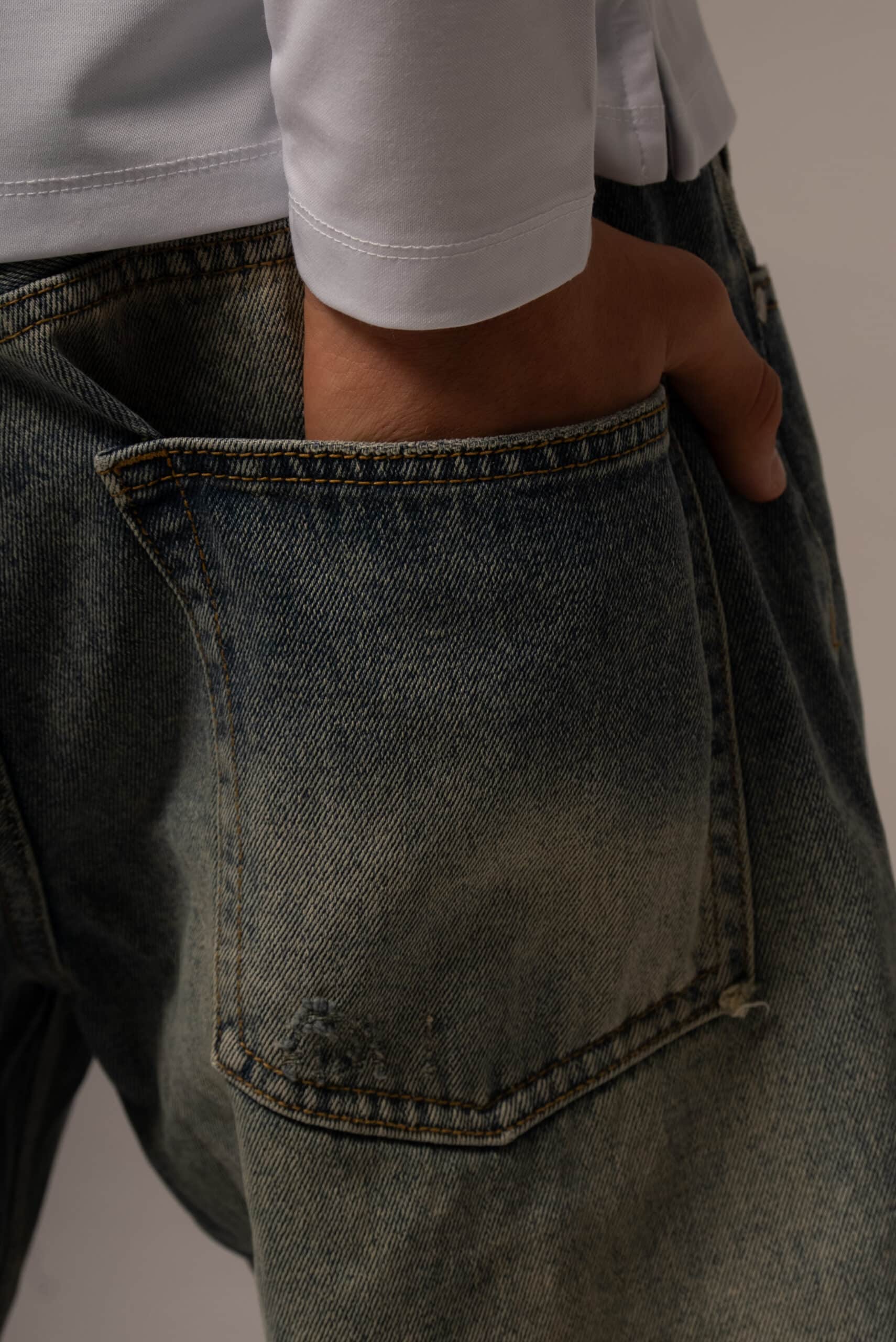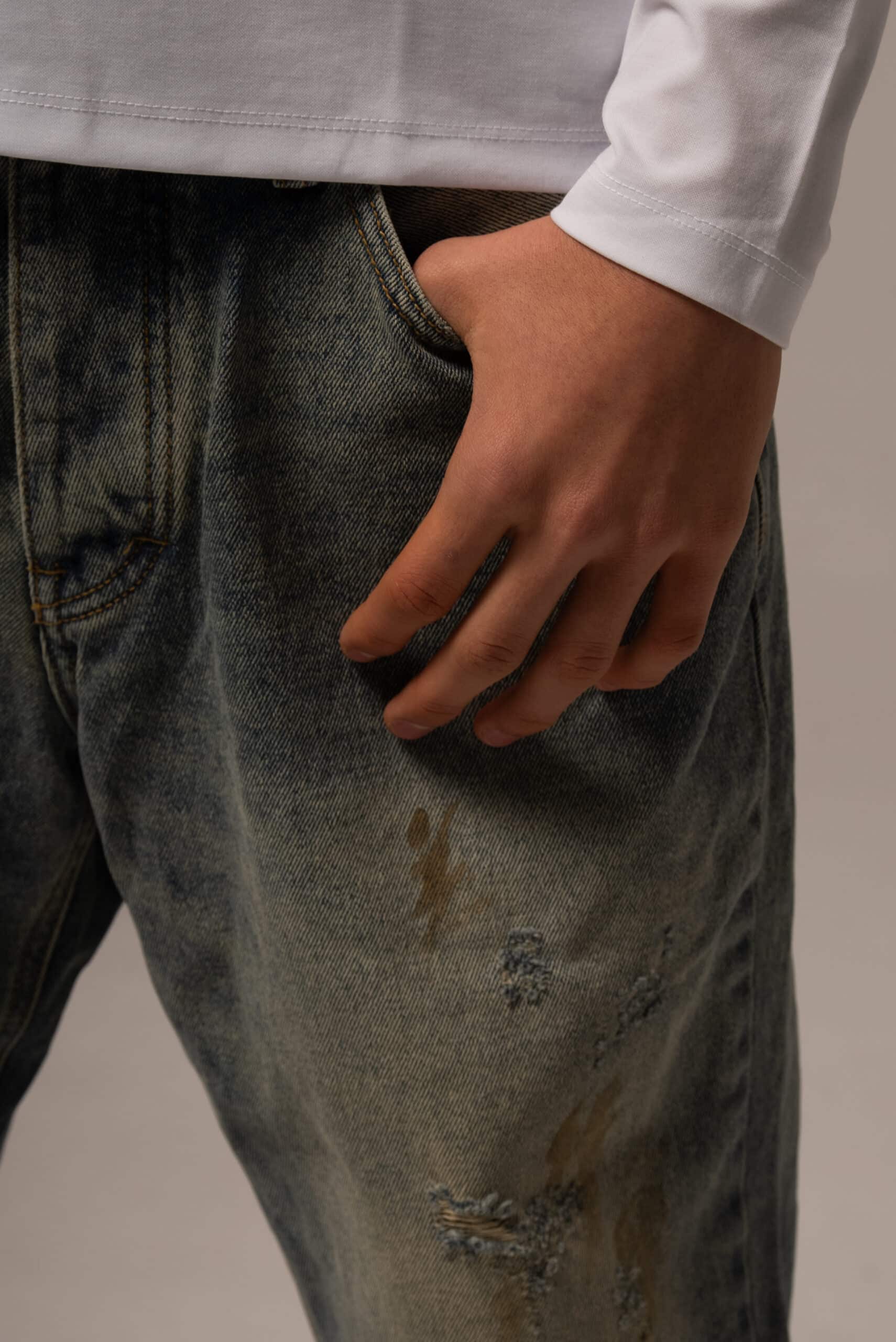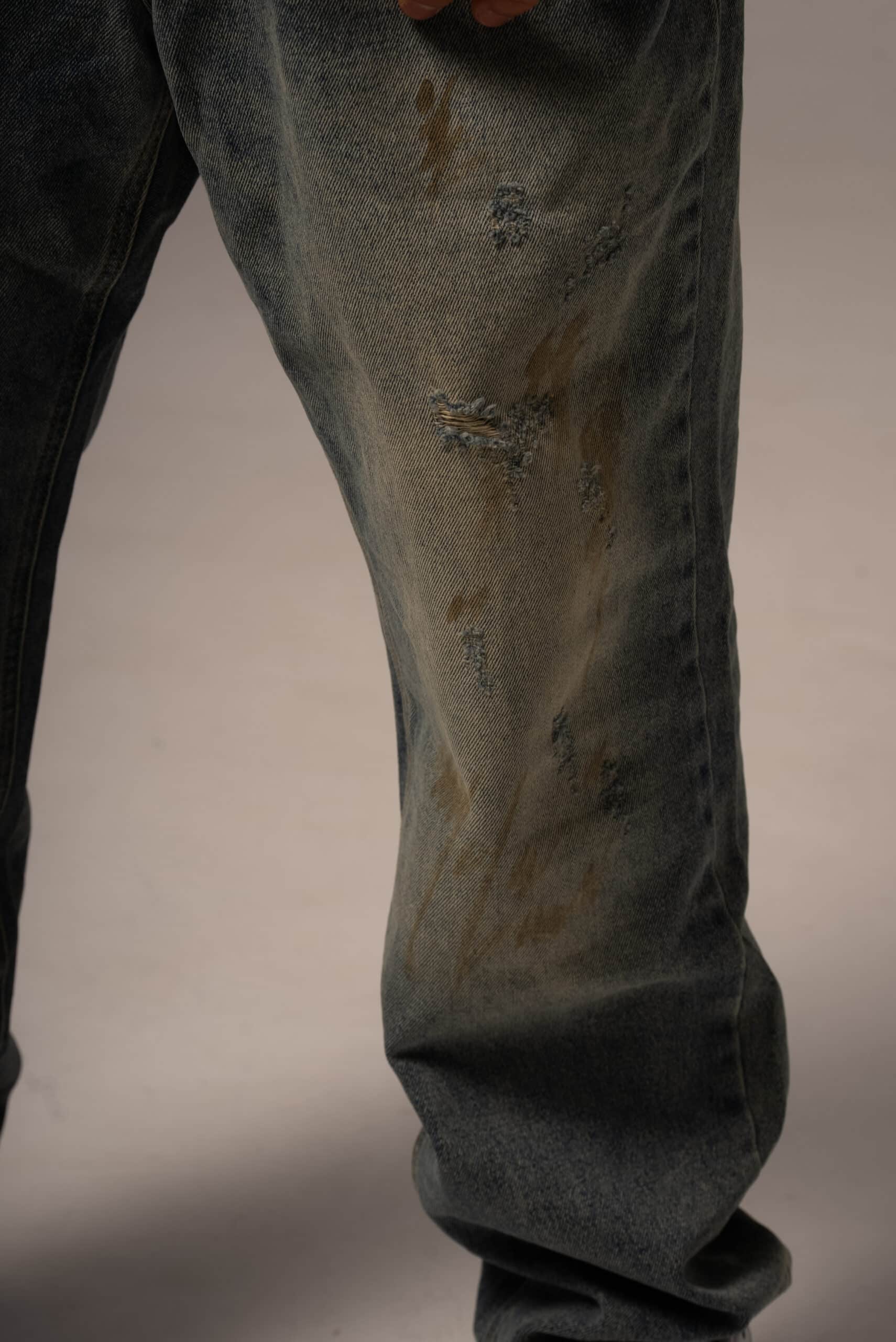 Jeansy męskie o kroju baggy z przetarciami