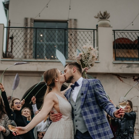 O rzucającym się w oczy deseniu oraz kolorze tkaniny. Wyróżniajacy się z „czarno – granatowego” tłumu. Jednorzędowa marynarka, kamizelka oraz wytaliowane spodnie podkreślą urodę oraz dodadzą jeszcze więcej szyku.