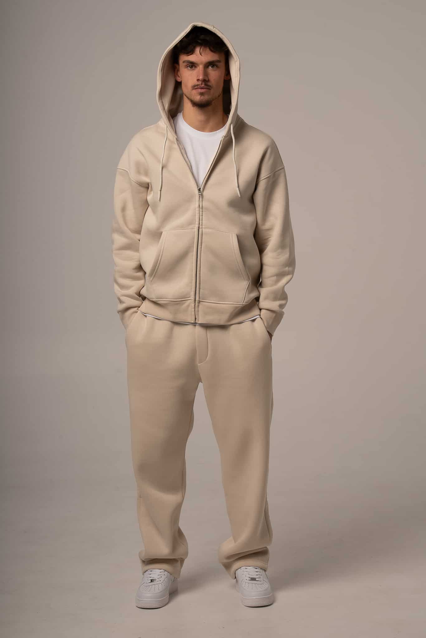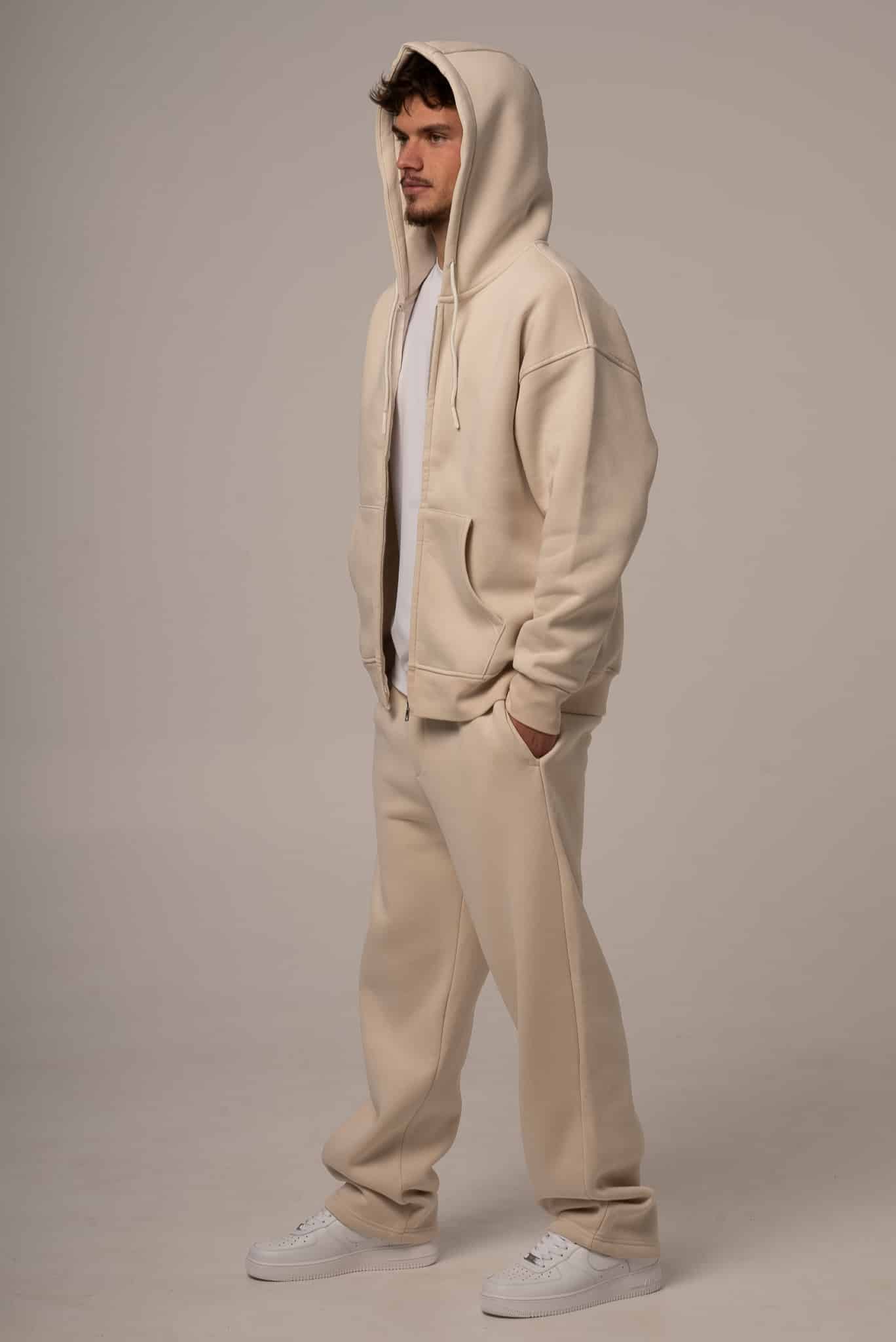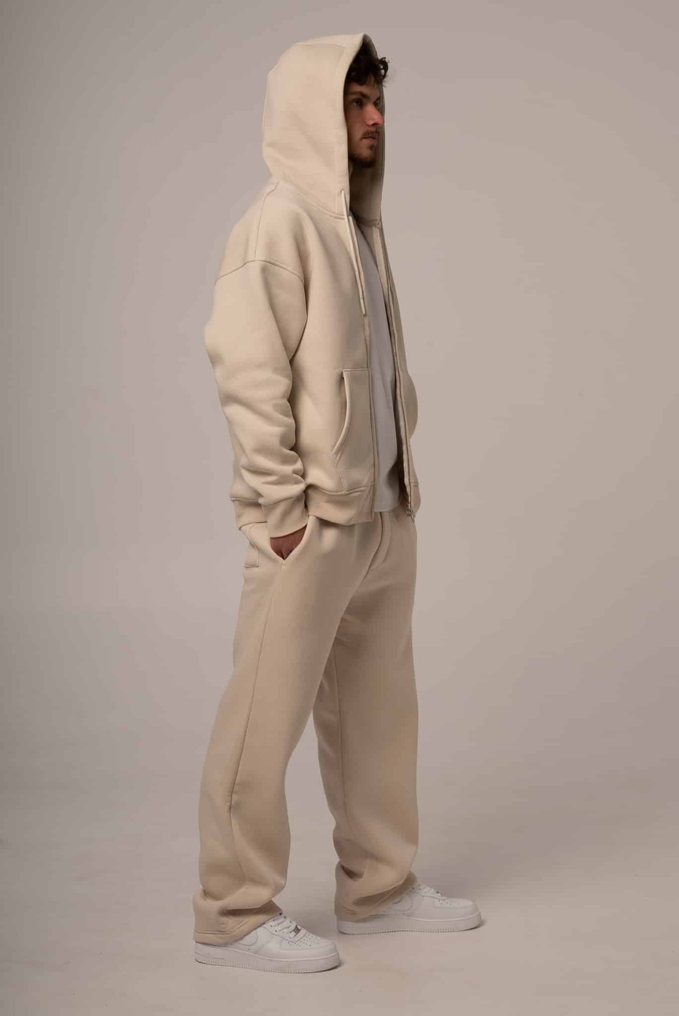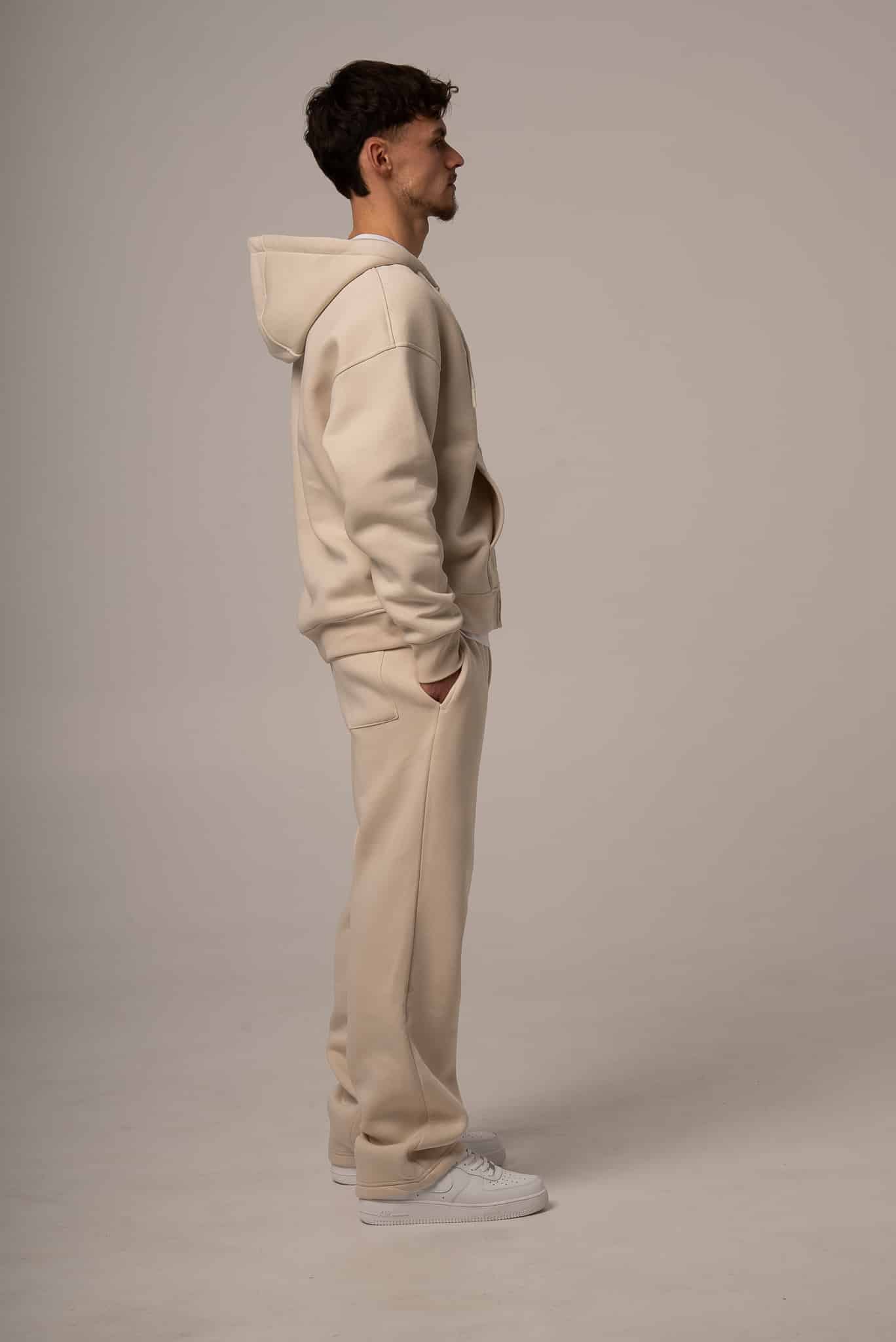 Męski komplet dresowy w kolorze beżowym z rozpinaną bluzą