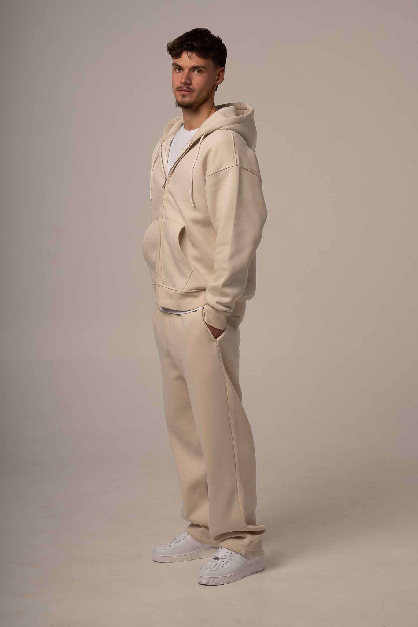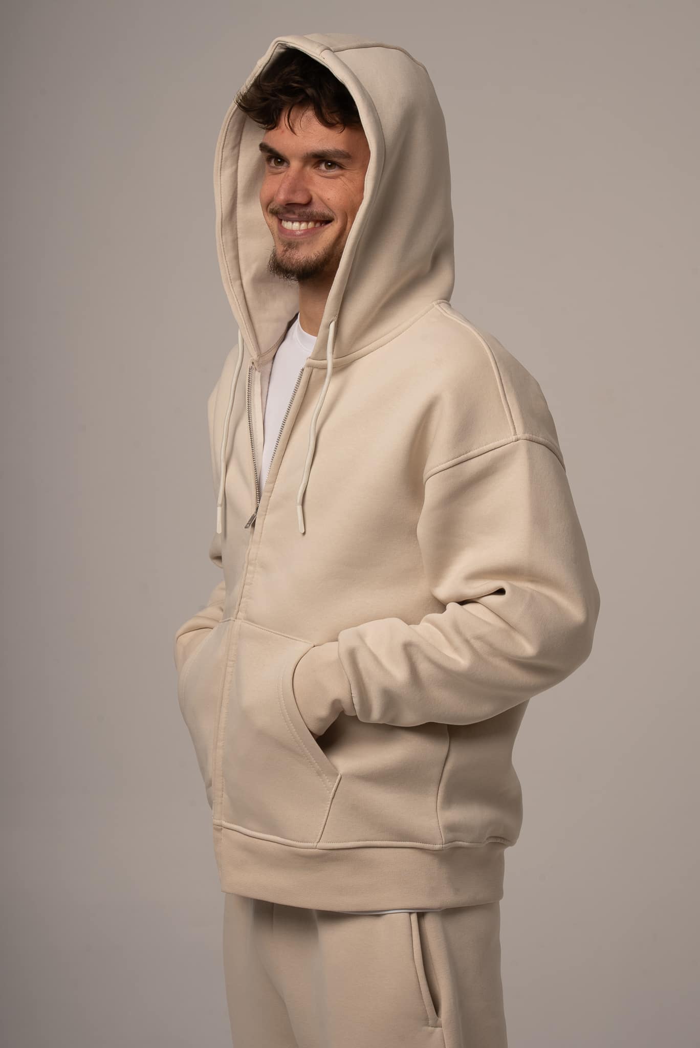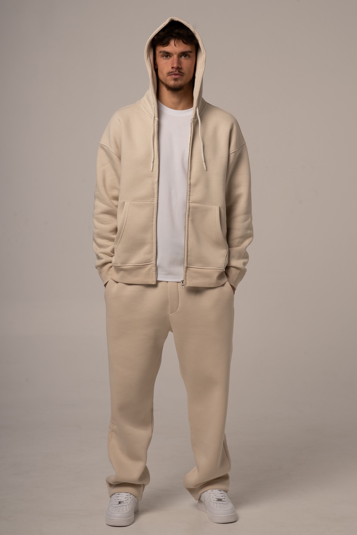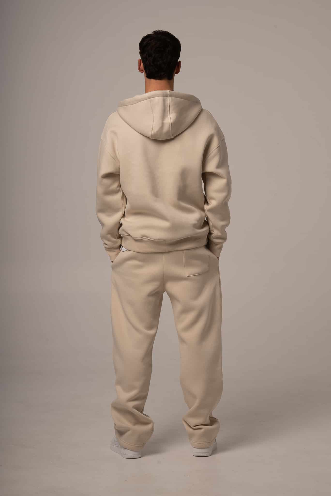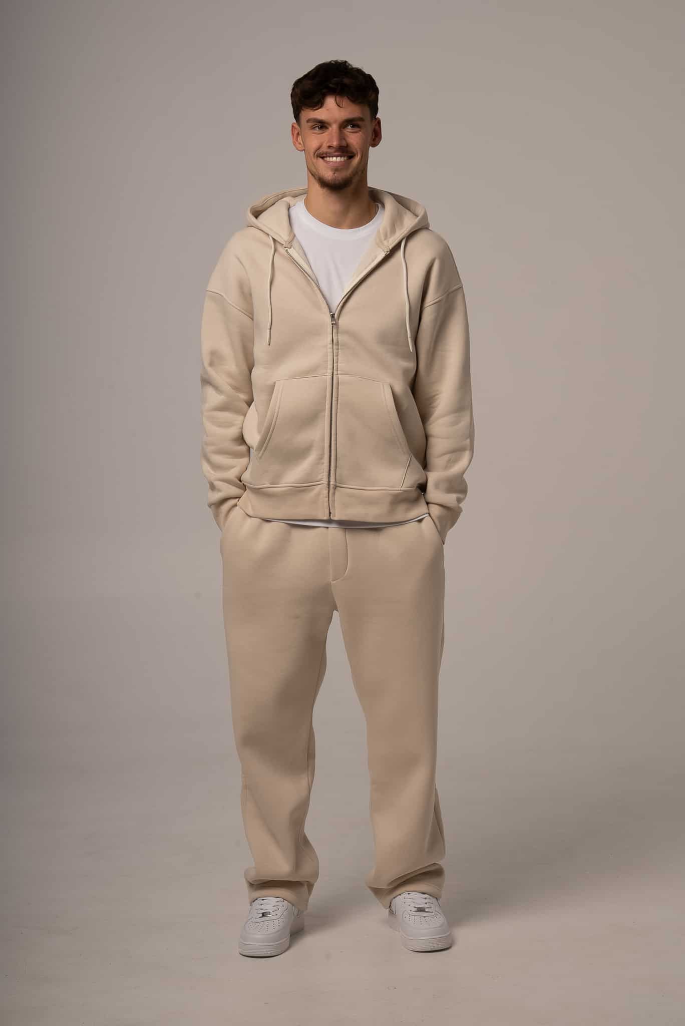 Męski komplet dresowy w kolorze beżowym z rozpinaną bluzą