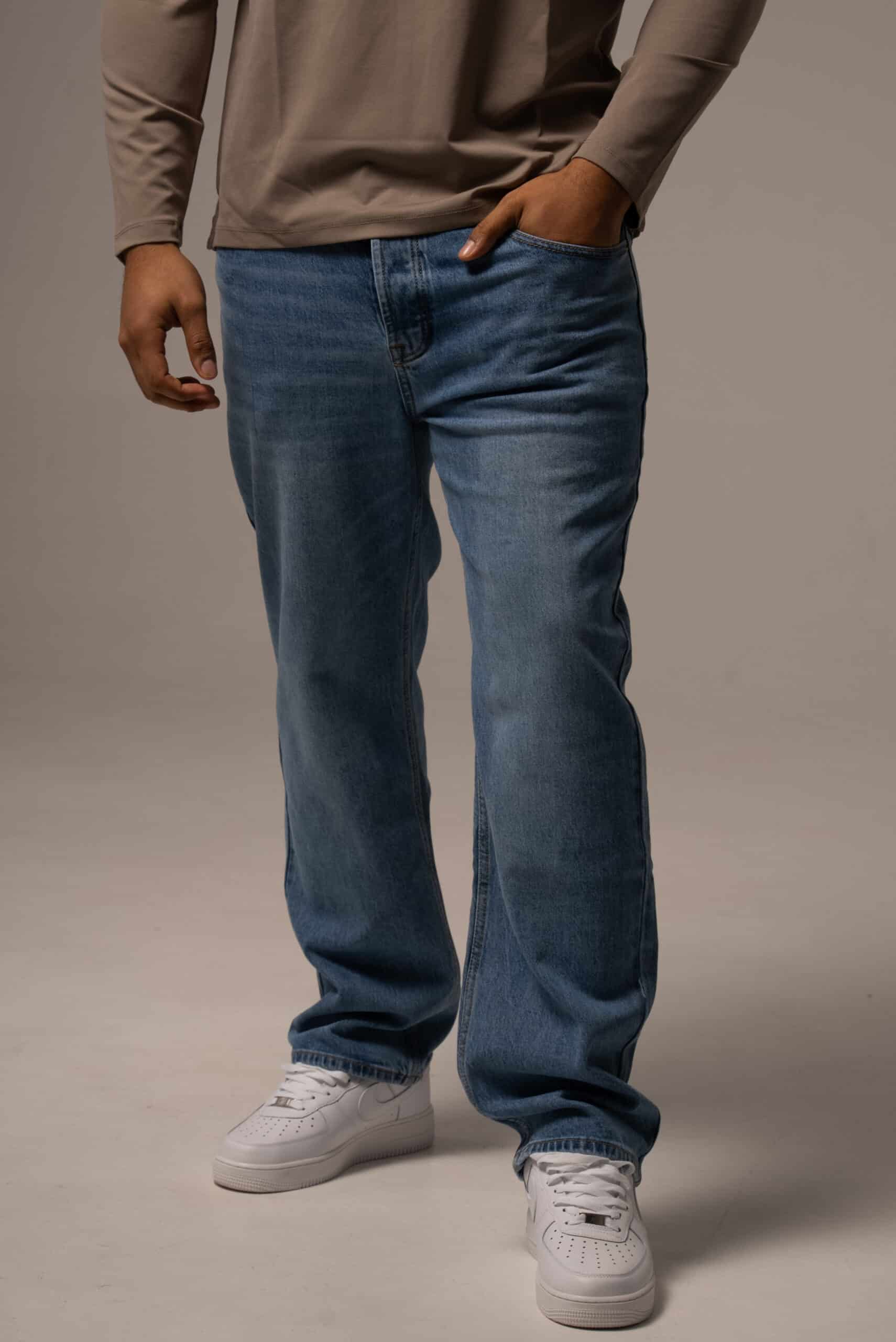 Niebieskie jeansy męskie o kroju baggy