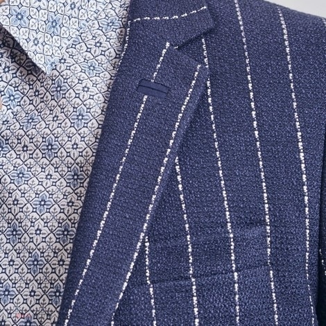 Niezaprzeczalnie, jedna z propozycji dla odważnych, stylowych oraz ceniących niekonwencjonalne połączenia i rozwiązania mężczyzn. Pełna elegancji, w dobrym guście oraz stylu granatowa marynarka w białe pionowe pasy. Wykonana z zastosowaniem najlepszych materiałów (bawełna 75%, wiskoza 20%, elastan 5% ) ma wytaliowany fason, który bardzo dobrze podkreśla męską sylwetkę.