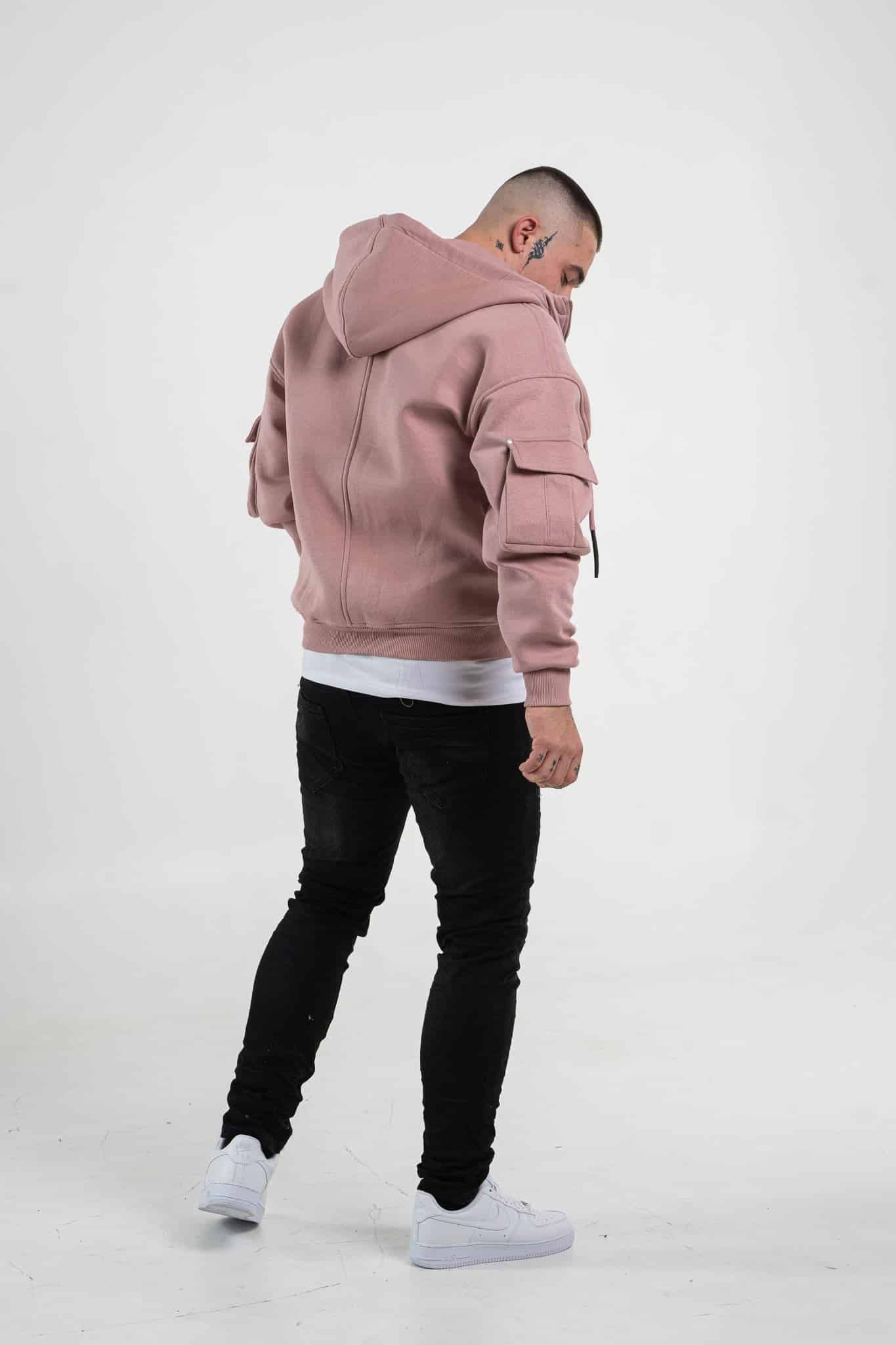 Rozpinana bluza męska z kapturem w kolorze różowym