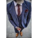 – garnitur typu slim-fit, trzyczęściowy (marynarka, kamizelka oraz spodnie- mieniący się materiał (odcienie niebieskiego, wpadające w fiolet))