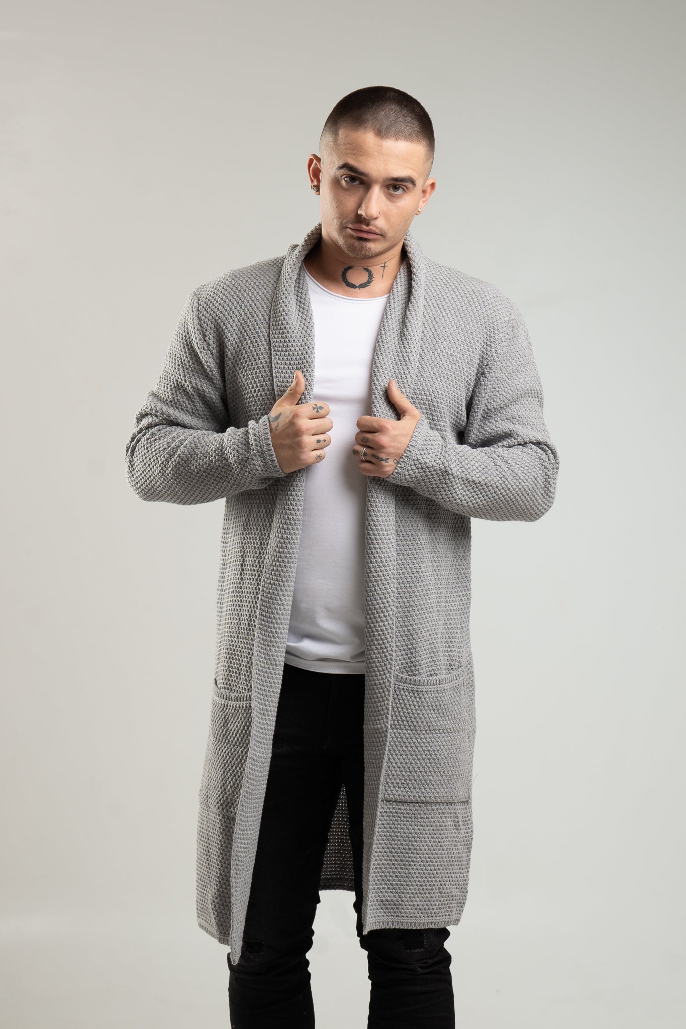 Szary kardigan męski