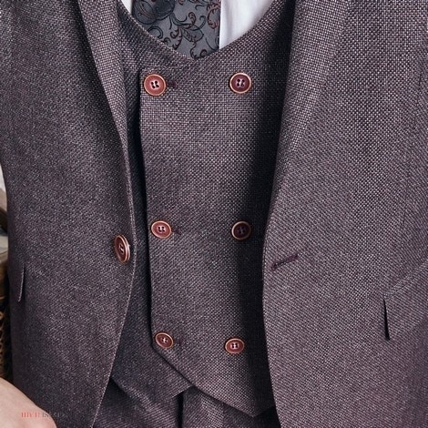 Trzyczęściowy garnitur męski w kolorze brązowym