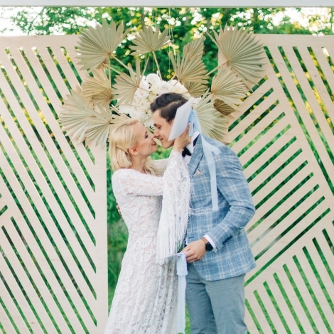 Trzyczęściowy garnitur męski w stylu boho w odcieniach błękitu i szarości