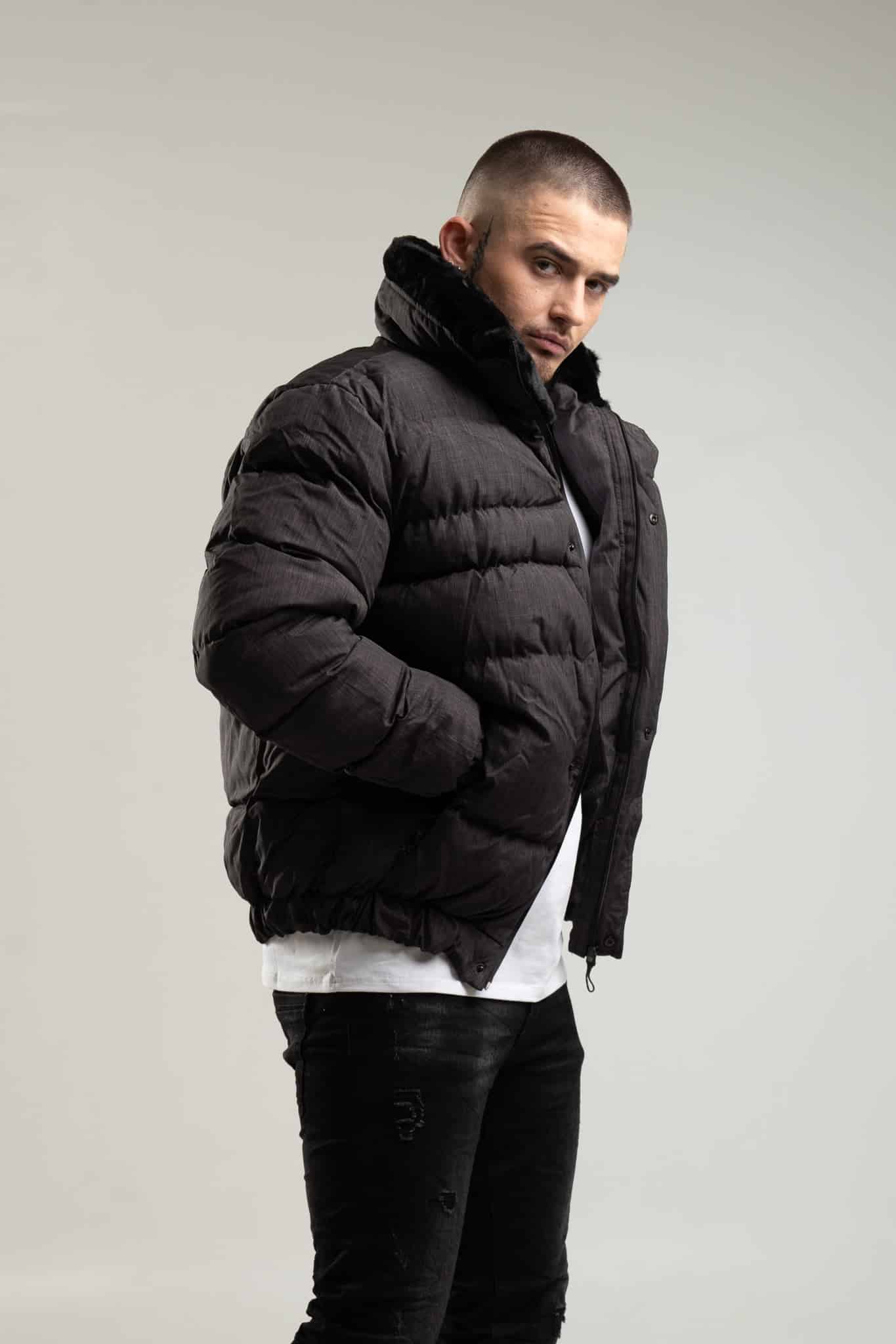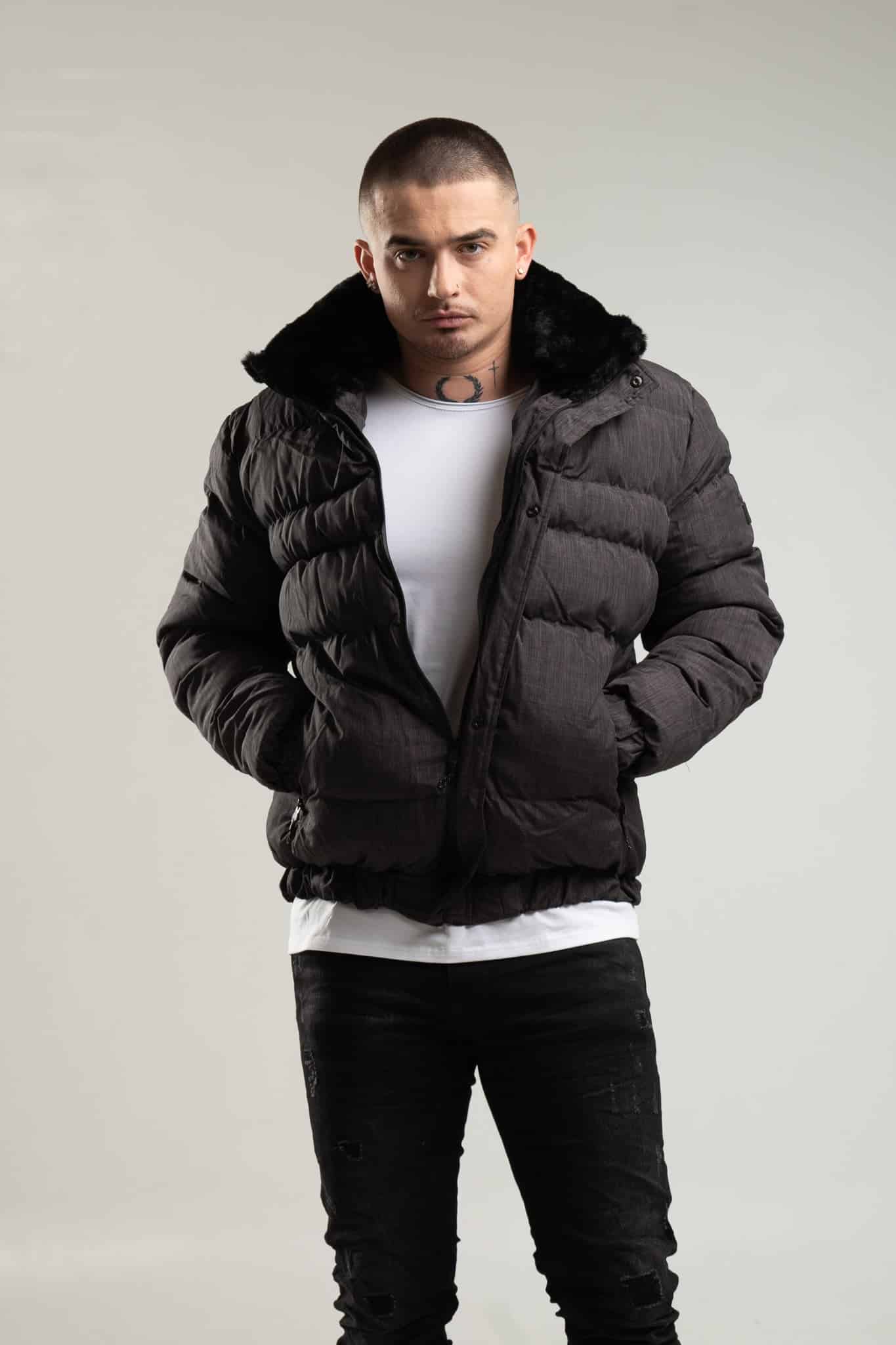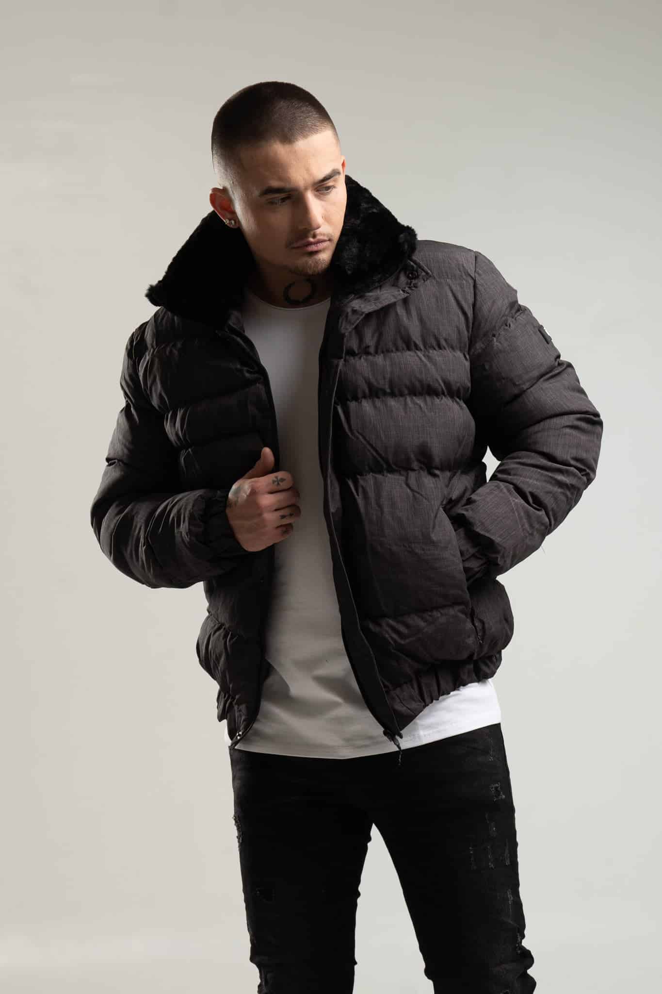 Zimowa kurtka męska typu bomberka w kolorze grafitowym