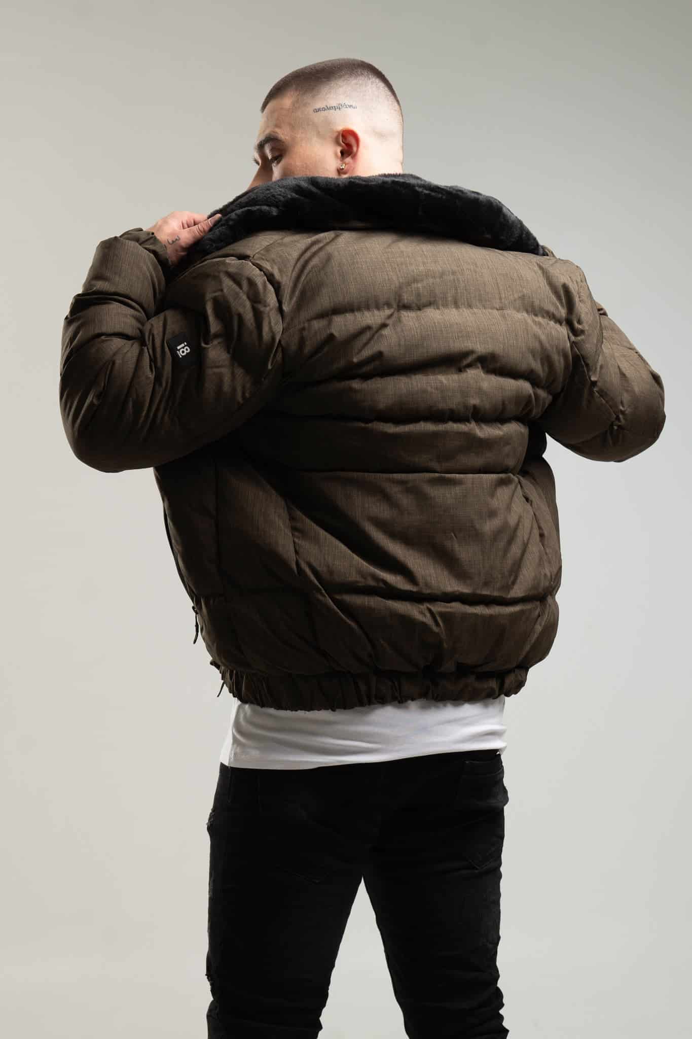 Zimowa kurtka męska typu bomberka w kolorze zielonym