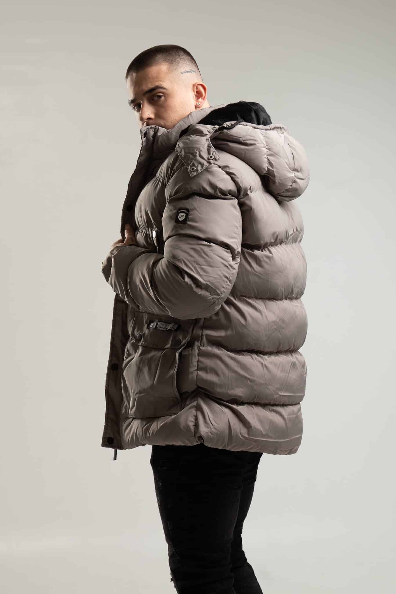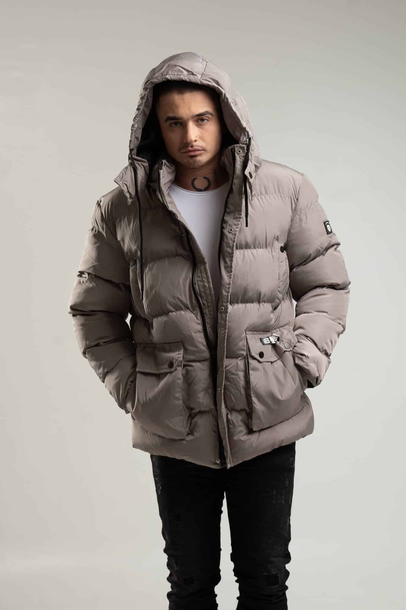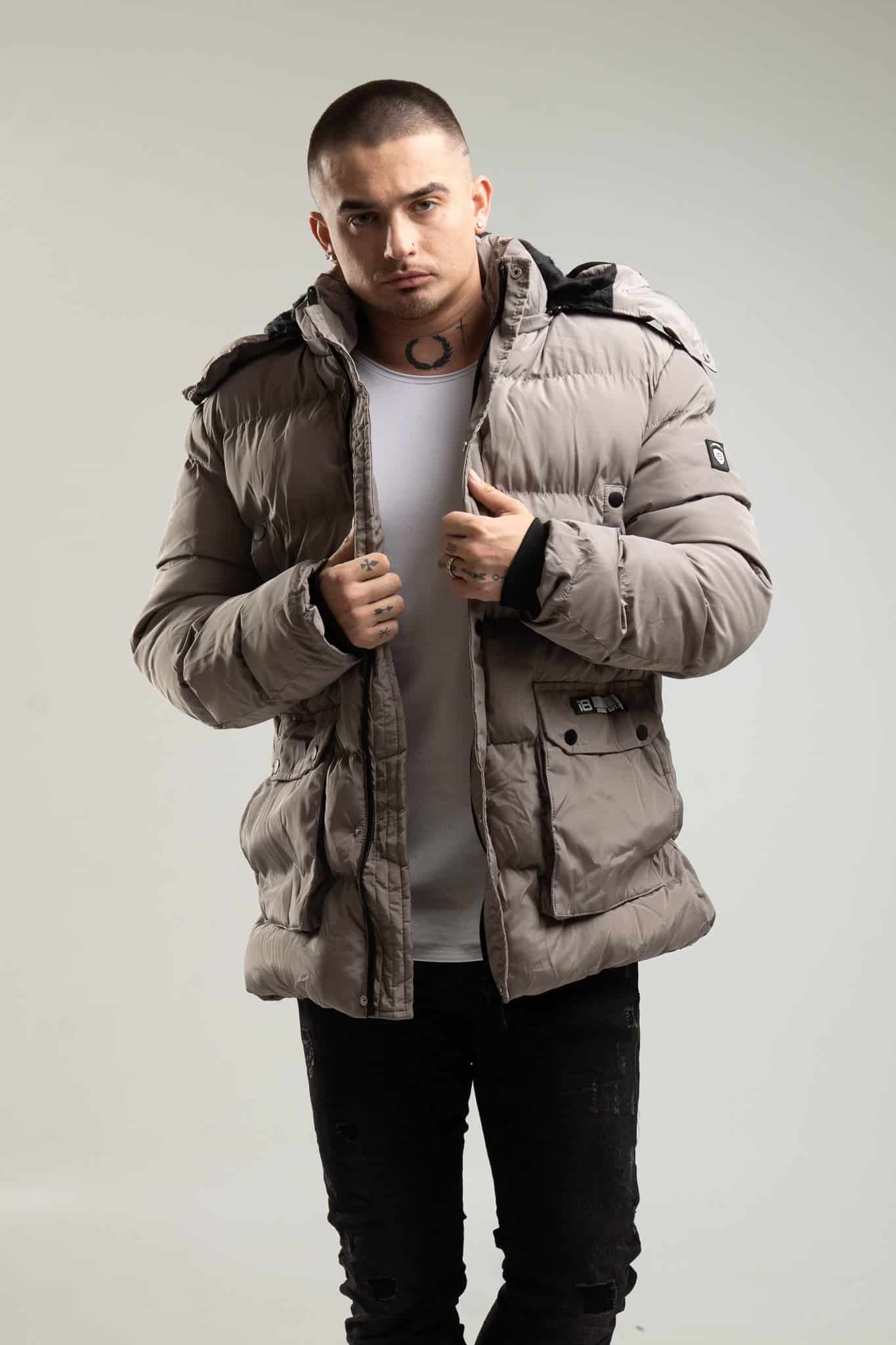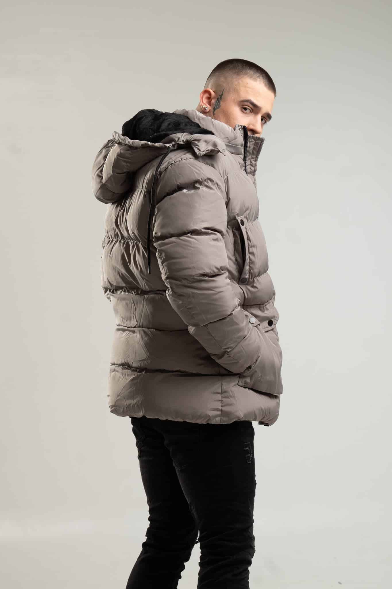 Bardzo ciepła kurtka męska typu parka w kolorze szarym z kapturem i ozdobnym futrem. Posiada odpinany, ocieplany kaptur. Zapinana jest na zamek oraz panel z napami. Ma cztery kieszenie z przodu – dwie boczne piersiowe zapinane na napy oraz dwie dolne również zapinane na napy. Na końcach rękawów znajdują się ściągacze.