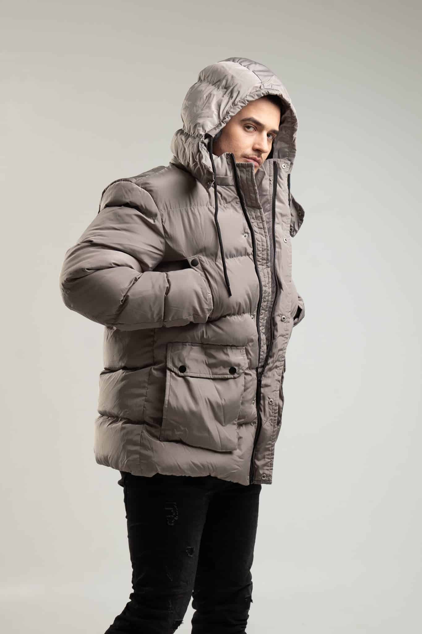 Zimowa parka męska w kolorze szarym
